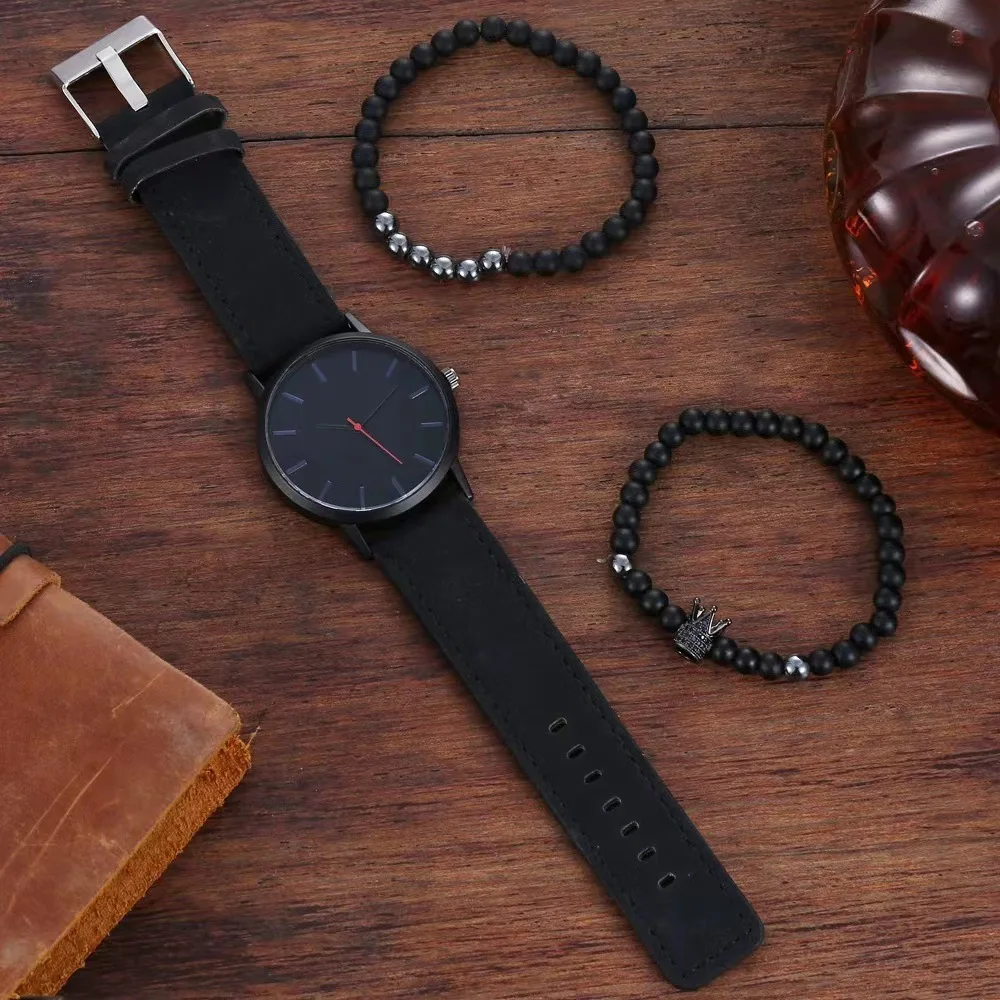 Item | Fashion Matte Leather Band 3 Pcs Beads Watch Set For men |