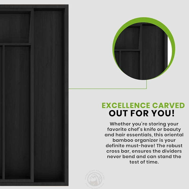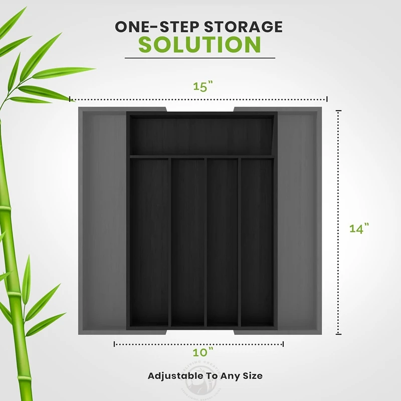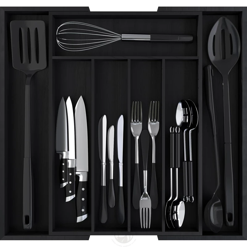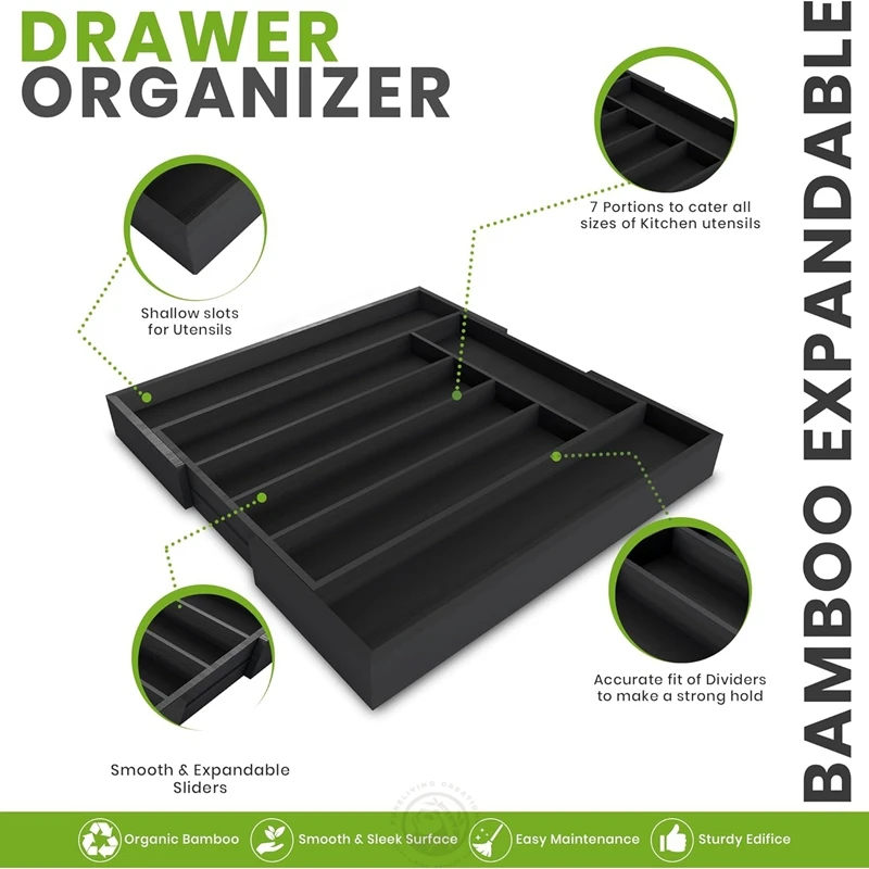Premium 100% Bamboo Black Color Multi-purpose Expandable Kitchen Bamboo Drawer Organizer Silverware Cutlery Tray