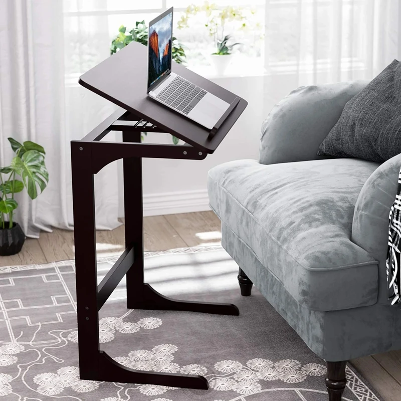Bamboo Adjustable Sofa Side TV Tray, C-Shape Couch Coffee End Table Laptop Desk