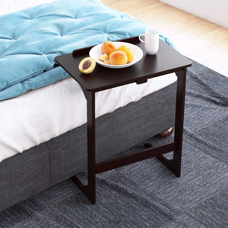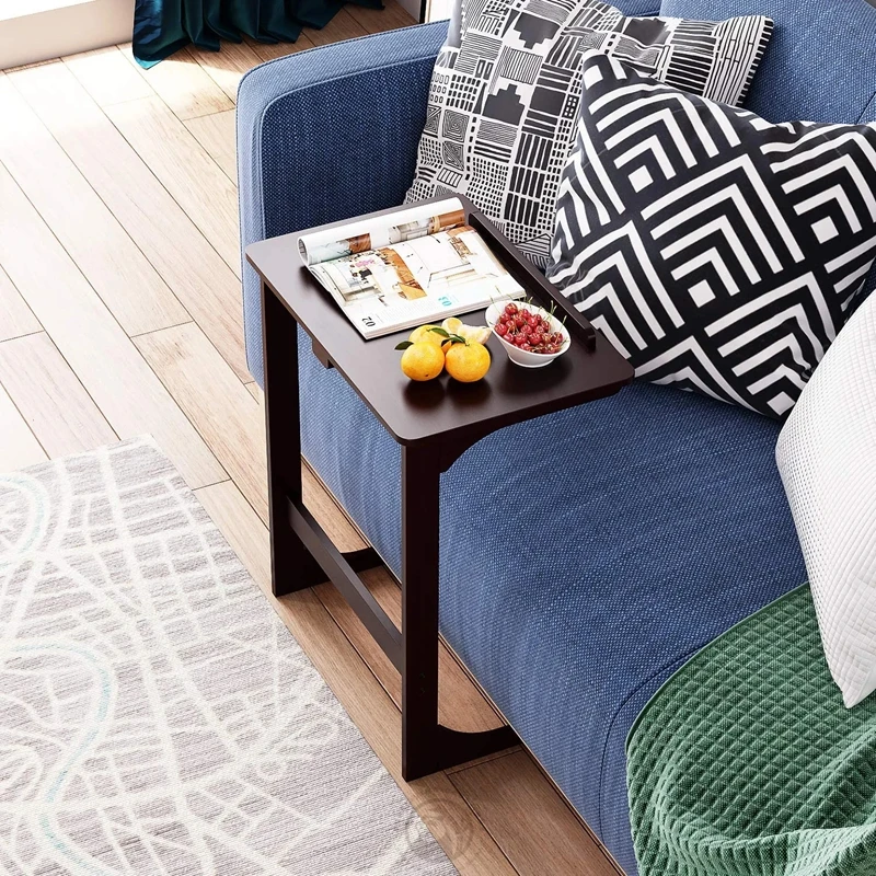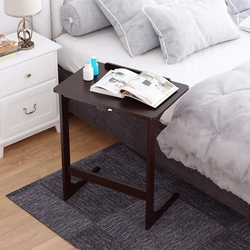 Living Room Bedroom Bedside Bamboo Wooden with Extra Storage Pocket C-shaped End Table Small Side Table