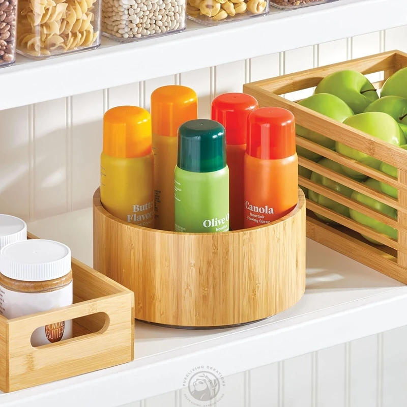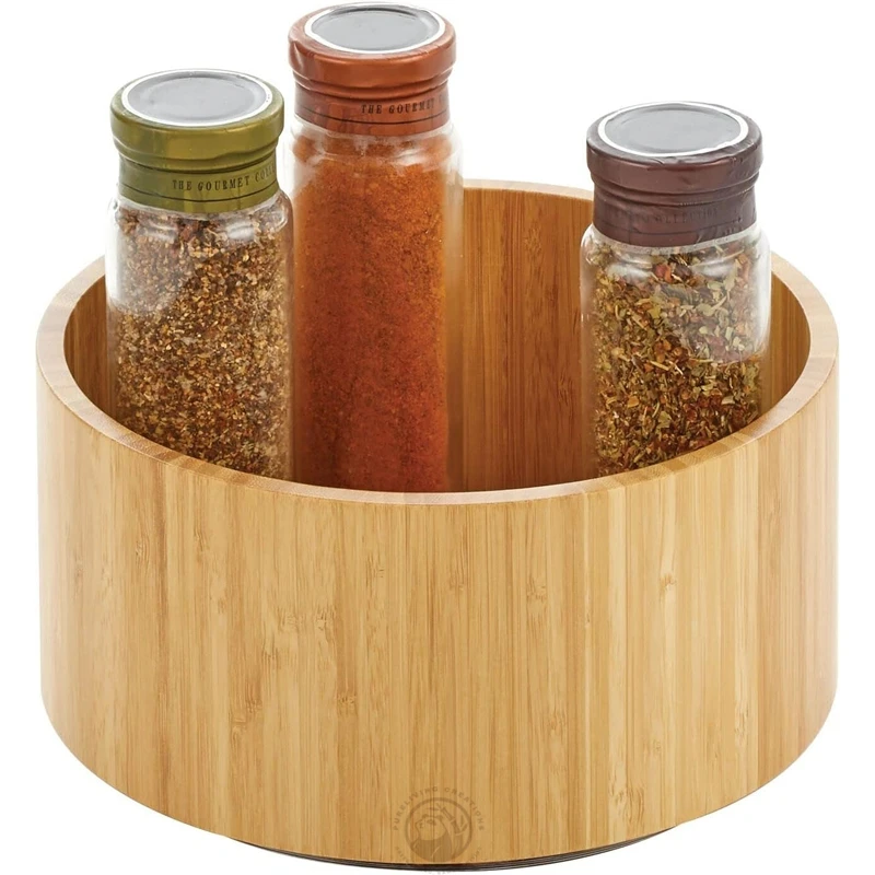Lazy Susan Turntable Bamboo Spinner for Kitchen Cabinet Fully Rotating Organizer for Food Spices