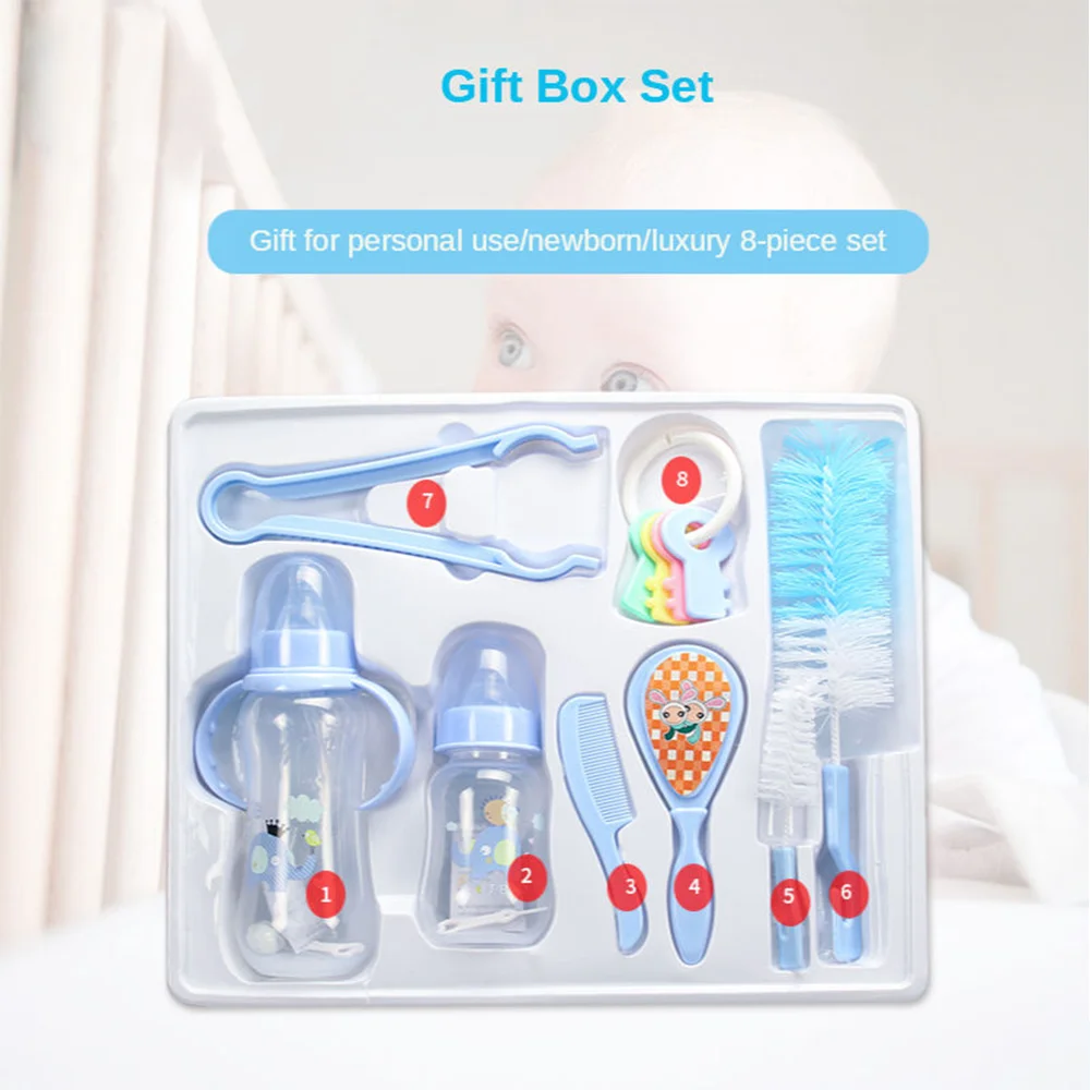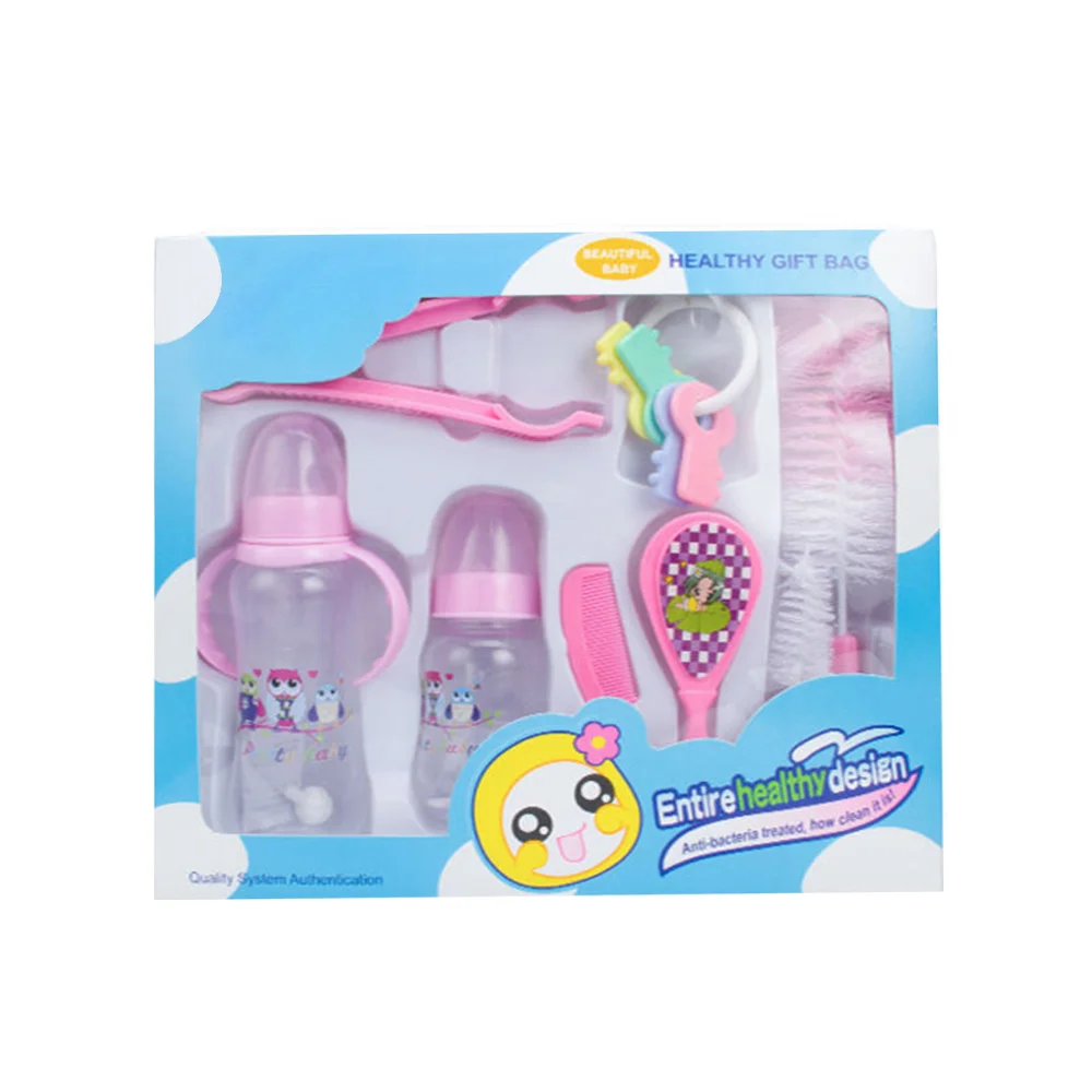 Item name: | Hot Selling Wholesale High Quality Pink Blue Drinking Cup Baby Bank Feeding Bottle Gift Sets With Brush And Hair Cleaning Brush |