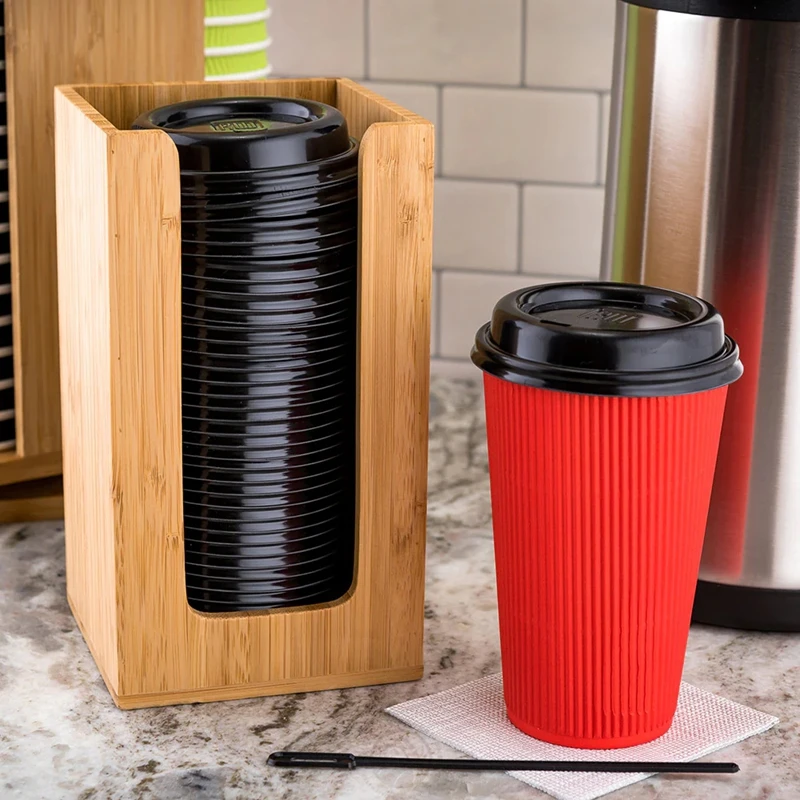 Rectangular Shape Standing Type Two Color Option Natural Bamboo Coffee Cup and Lid Dispenser for Coffee Station