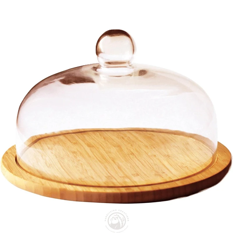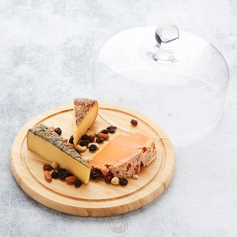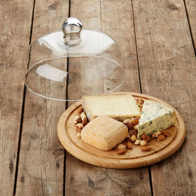 Round Cheese Board Set with Glass Cheese Dome Made of Natural Bamboo Factory