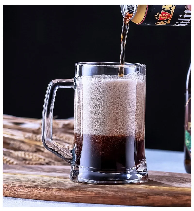 Glass Beer Mugs With Handles Large Drinking Cups for Tea Coffee Beer Stein Dishwasher and Freezer Safe
