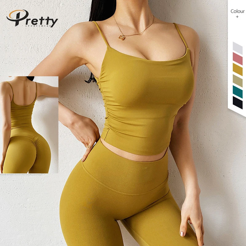 Wholesale Custom Logo Summer High Support Push Up Workout Yoga Spaghetti Strap Women Tank Top With Bra