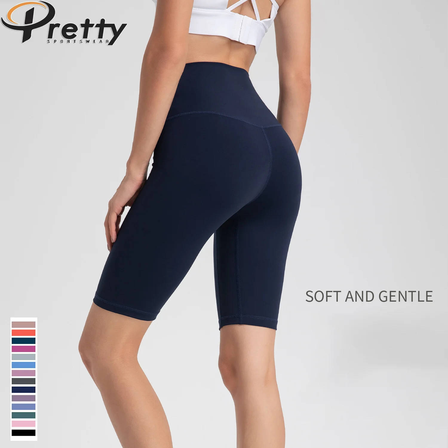Custom Women Clothes Girls Yoga Shorts Seamless High Waist Knee Length Push Up Shorts Active Wear Workout Gym Fitness For Women