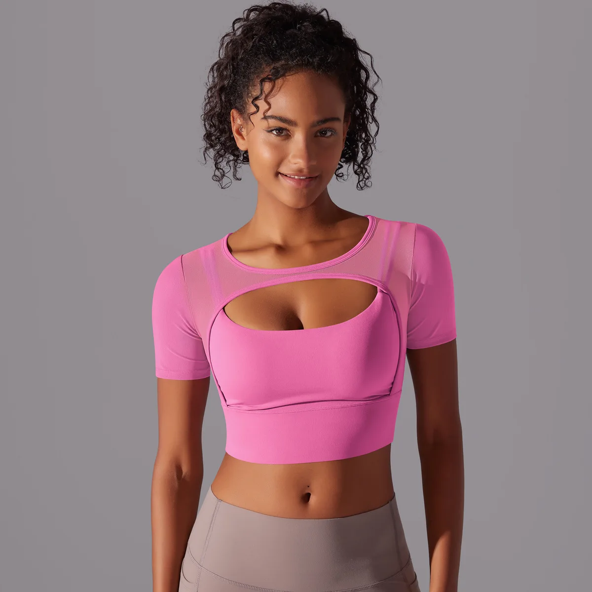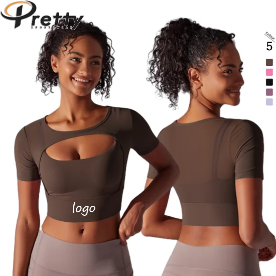 2024 Womens Clothing Gym Fitness Yoga Tank Top Custom Sportswear Short Sleeve Tshirts Sexy Mesh Sportswear Crop Tops For Women