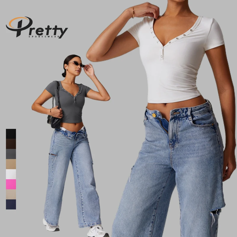 Name | 2024 New Arrival Woman's Yoga Gym T-shirts V-neck Sexy Breathable Quick-dry High Elastic Woman's Fitness Workout Sportswear. | ||||||