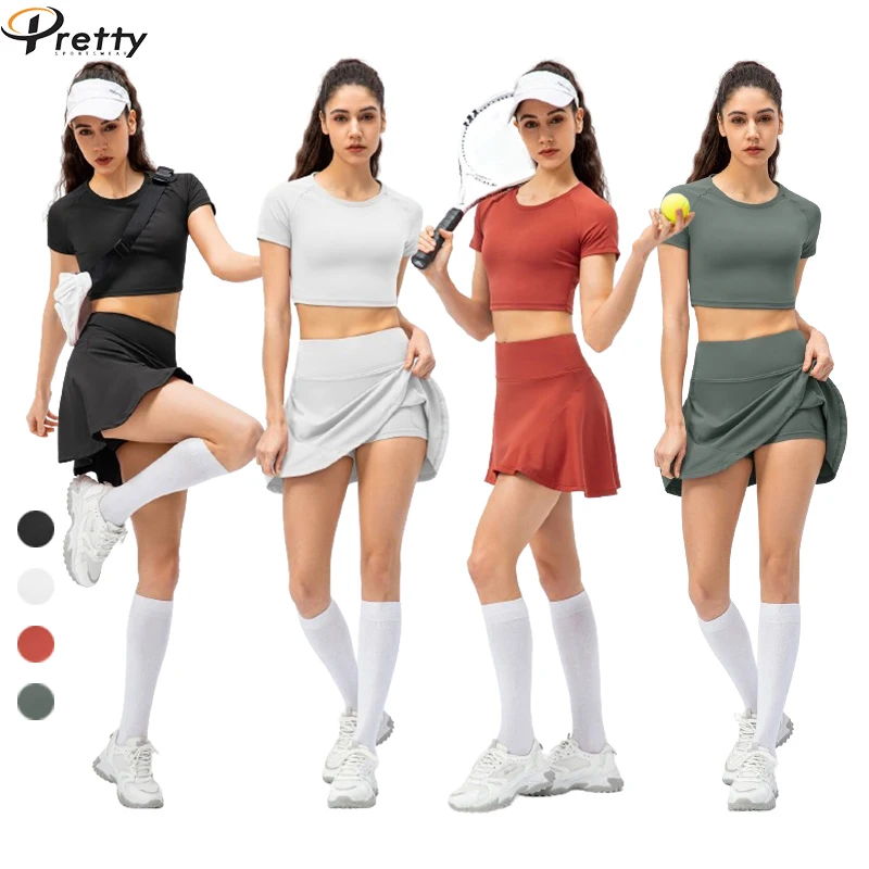 Name | 2024 Spring and Summer Women Two Piece Running Training Tennis Skirts Sets Short Sleeve Crop Top Golf Skirt Suits for Girls | ||||||