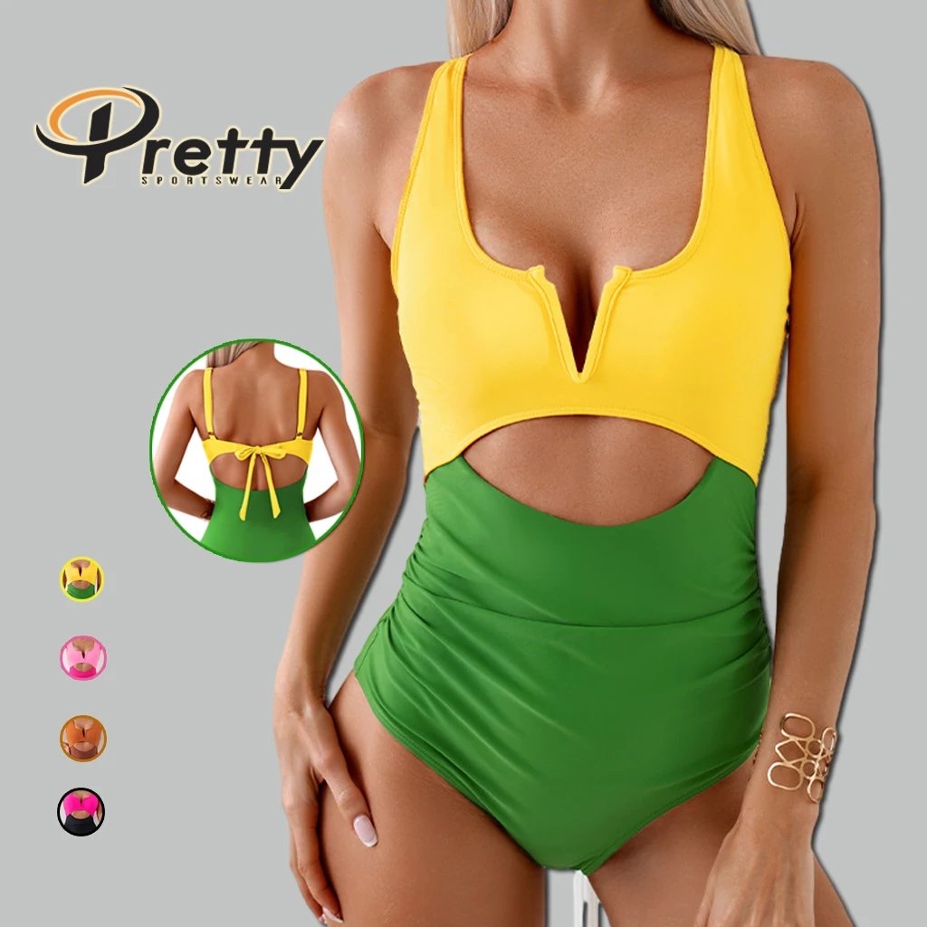 2024 New Arrivals High quality Blank customized One-piece swimsuit clashing colors Bikini with Chest pad