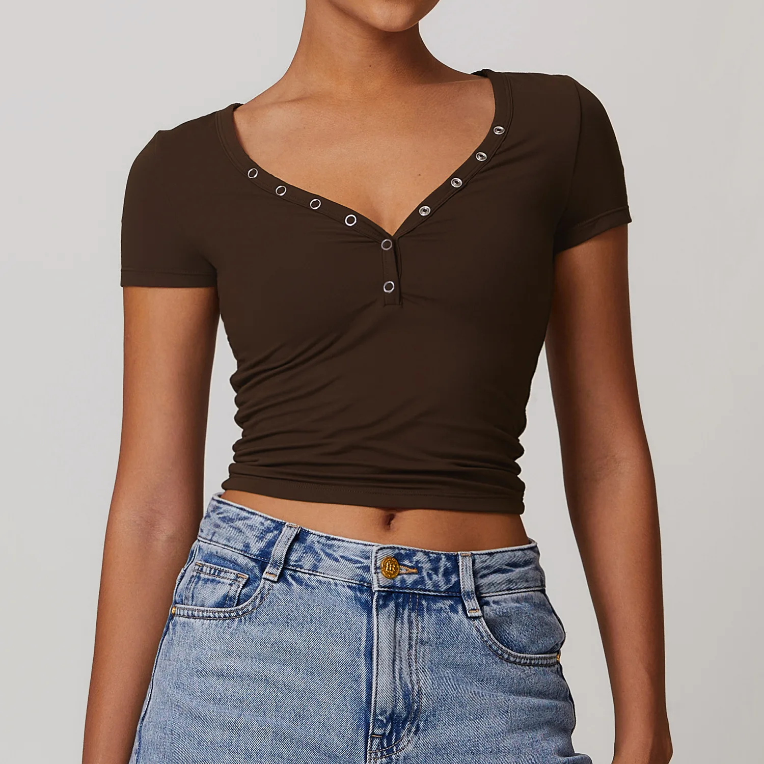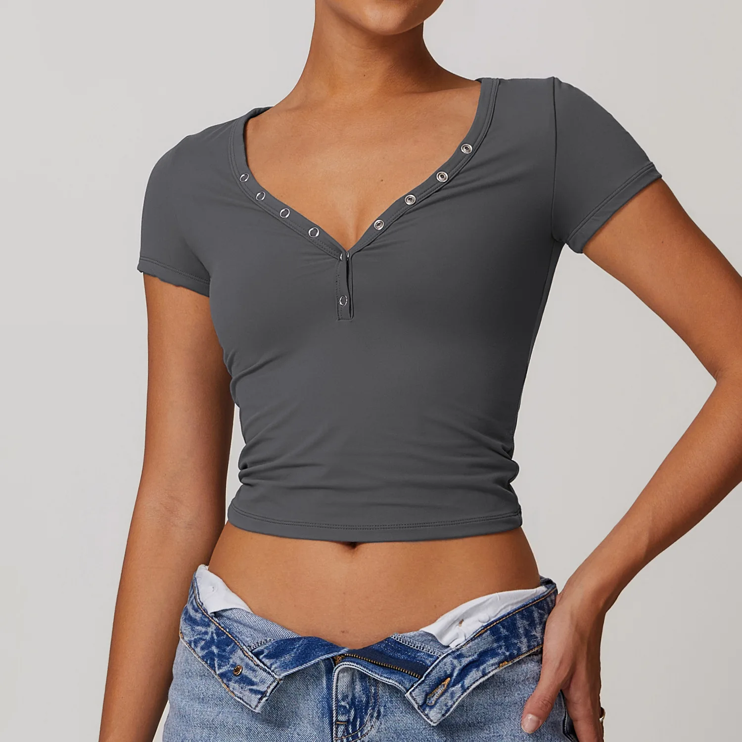 Name | New Arrival Wholesales V-neck Women Yoga Short Sleeve Breathable Running Fitness Gym Yoga Top Outdoor Sports T-shirt Top | ||||||