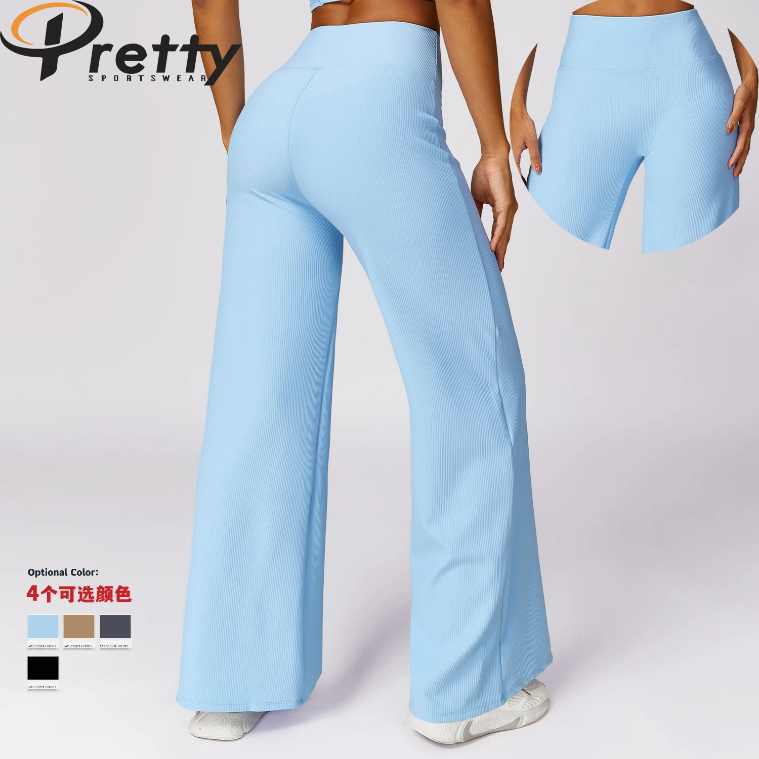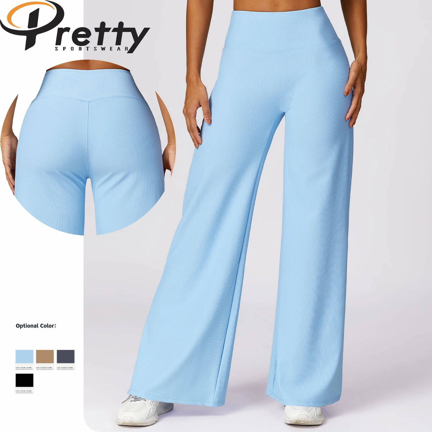 2024 New Arrival Ribbed Pants & Trousers For Women High Waist Yoga Dance Pants Sports Wear Casual Loose Women's Wide Leg Pants