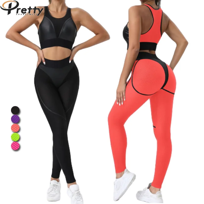 Custom Women Fitness Set Womens Clothing Sportswear Sexy Tight Mesh Sports Bra Butt Lift Yoga Leggings For Women 2 Piece Set