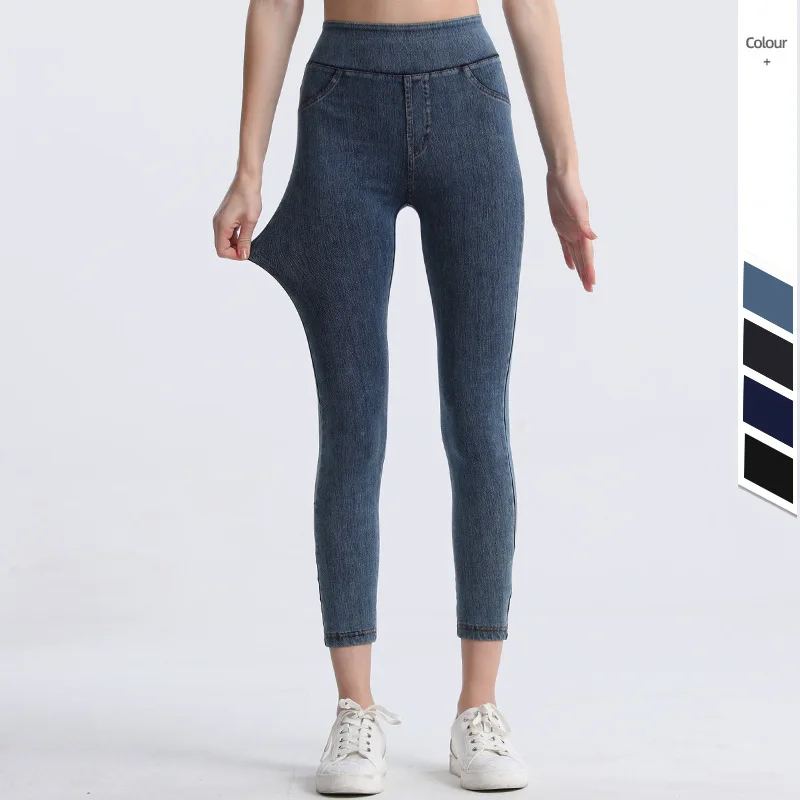 Wholesale Jeans Printed Yoga Pants Women Fitness Leggings Push Up Sport Pants Bubble Butt Running Pants High Waist Yoga Leggings