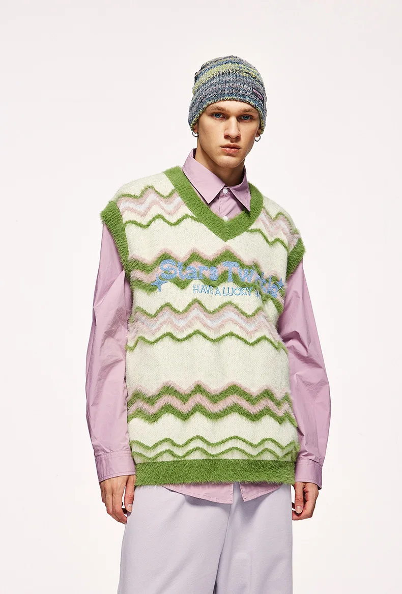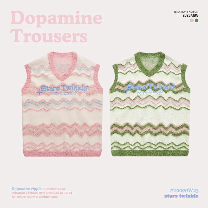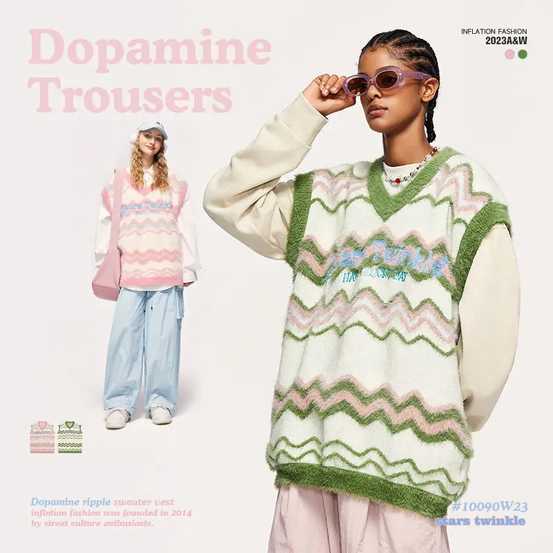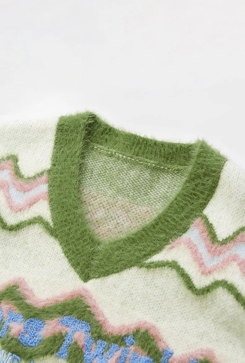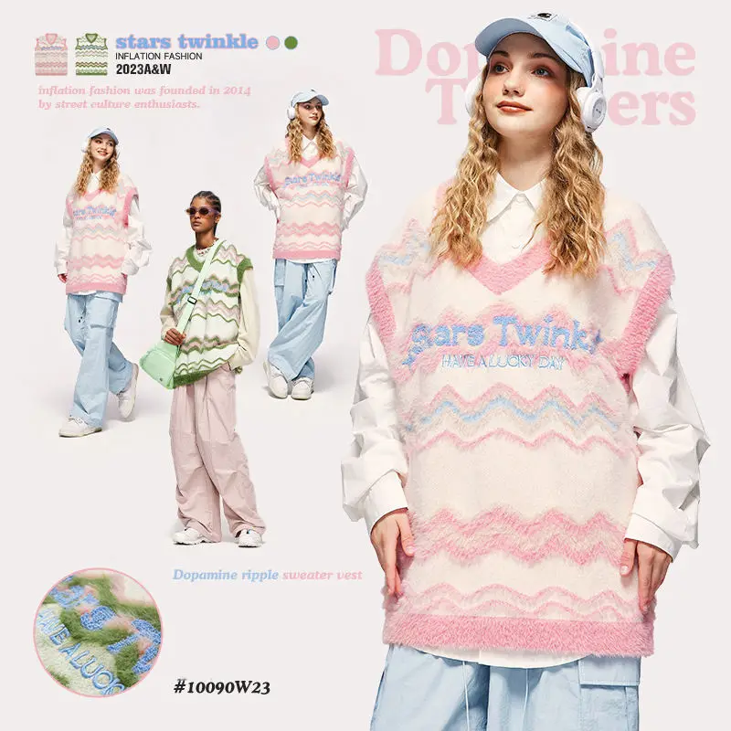 2023 New Style High Street Unisex V-neck Embroidery Logo Vests Sweater For Women Tank Top Y2k Colorful Style For Younger