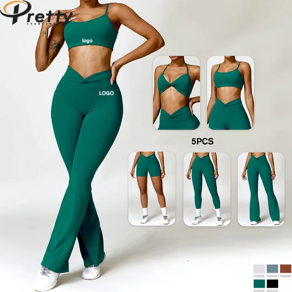 New Arrival Women's Sets 5 Pcs Sportswear Fitness & Yoga Wear Gym Fitness Sets Workout Yoga Outfit Plus Size Yoga Sets For Women