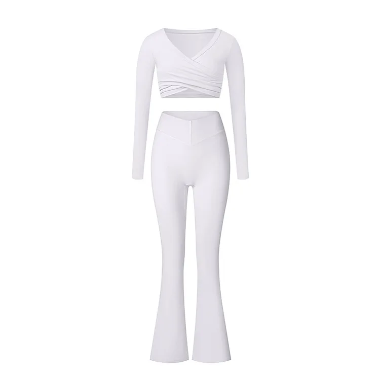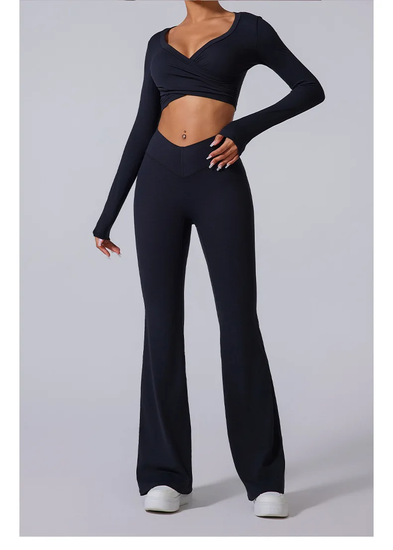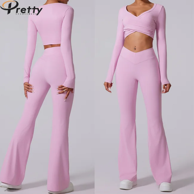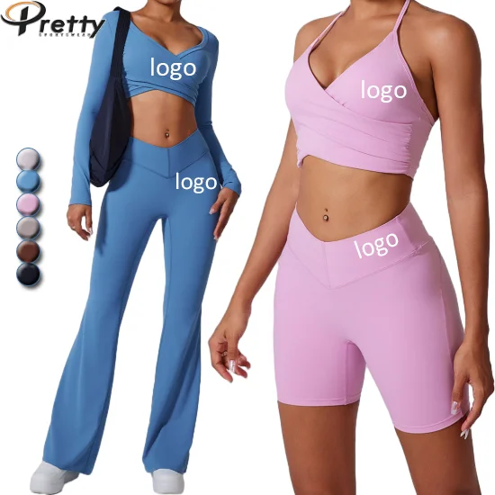 Custom Woman Clothing Women Gym Fitness Sets 4 Piece Yoga Suit Sportswear Sexy Long Sleeve Crop Tops Yoga Leggings For Women