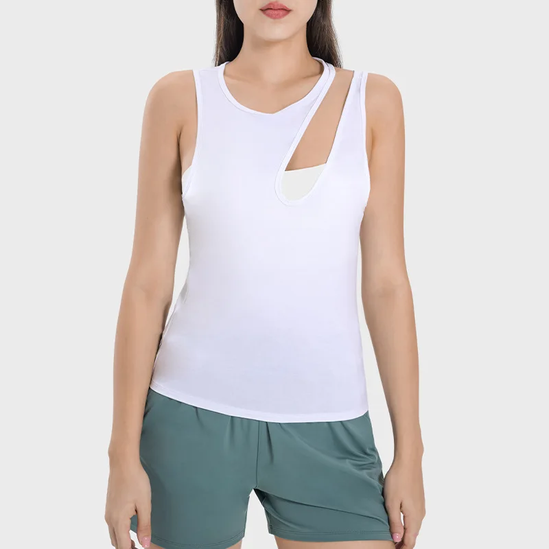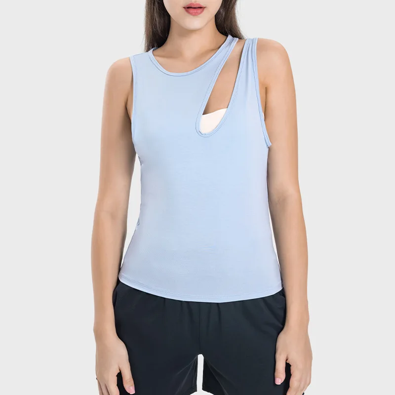 Nude Felling Gym Fitness Casual Sports T-shirt Hollow-out Shoulder Quick Dry Sports Vest Plus Size Women Skinny Yoga Tank Top