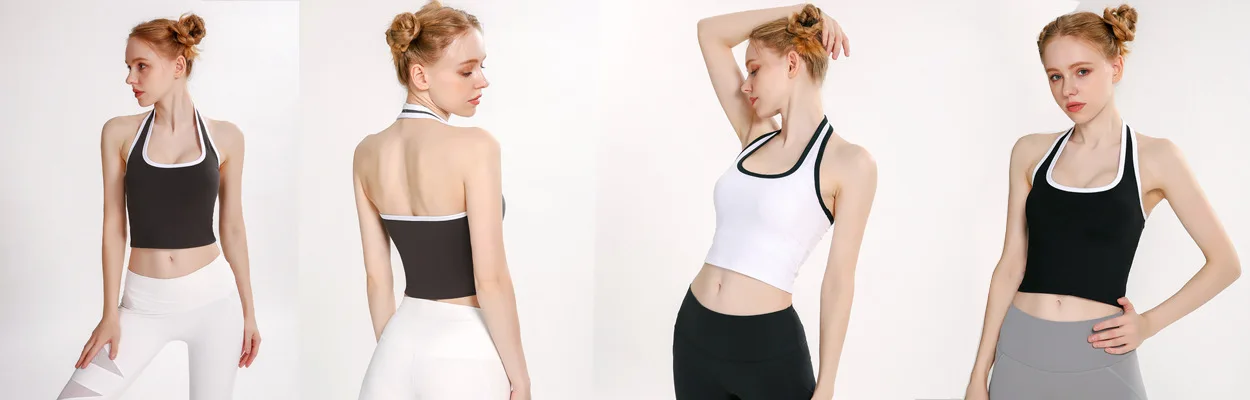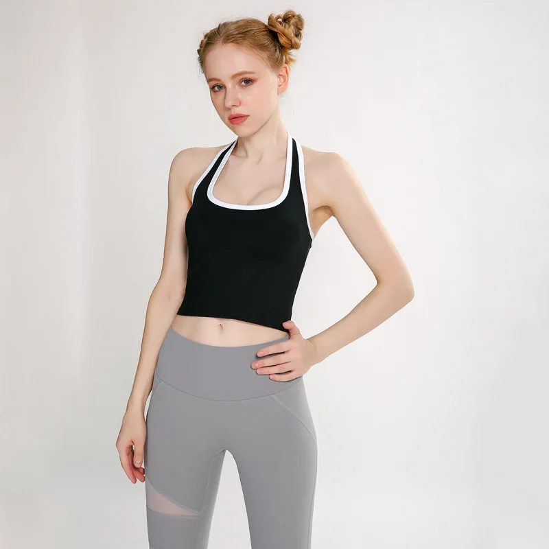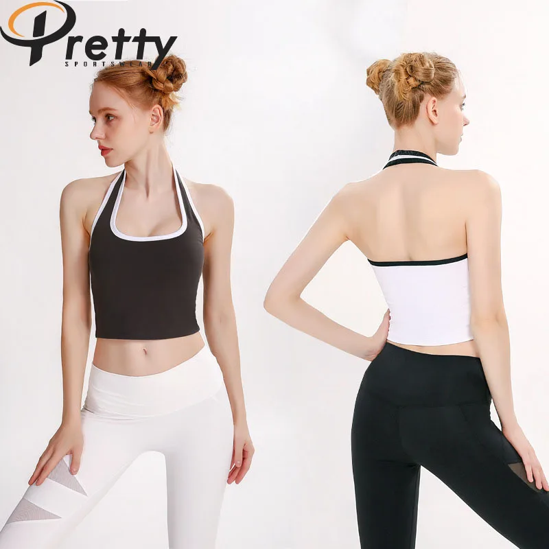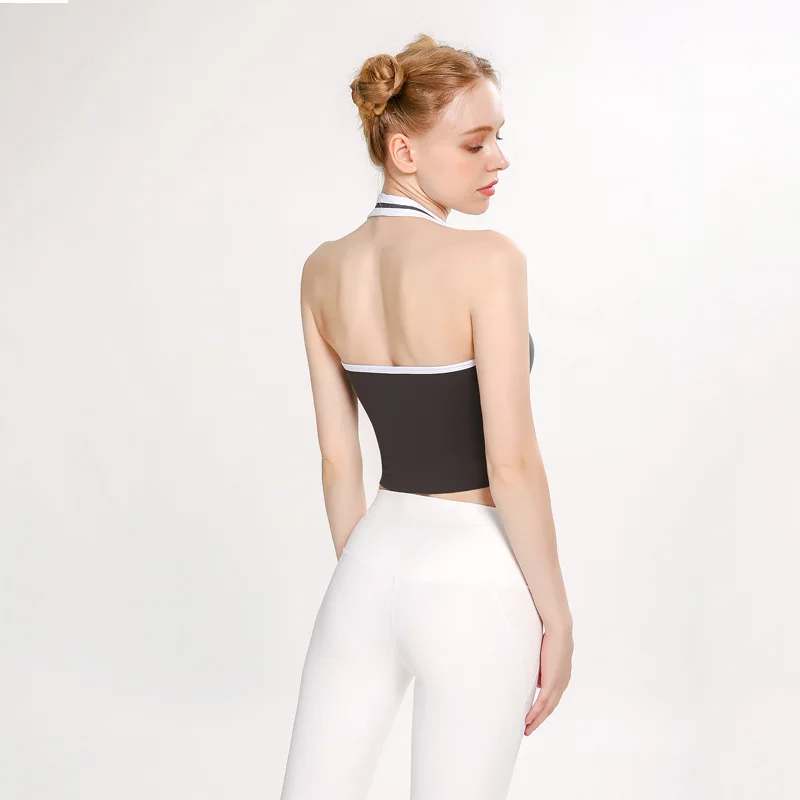 2024 New Arrivals Custom Logo Hanging Neck Bra Gather Bra Gym Workout Crop Top Breathable Fitness Sports Wear Yoga Bra