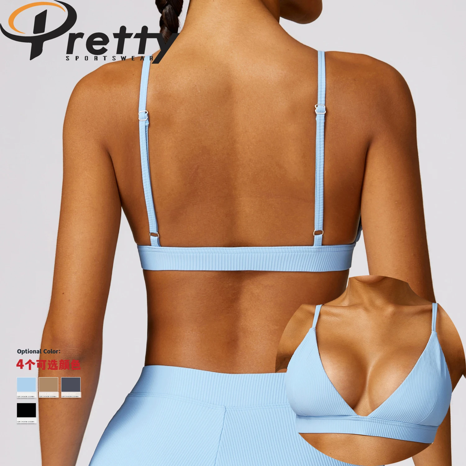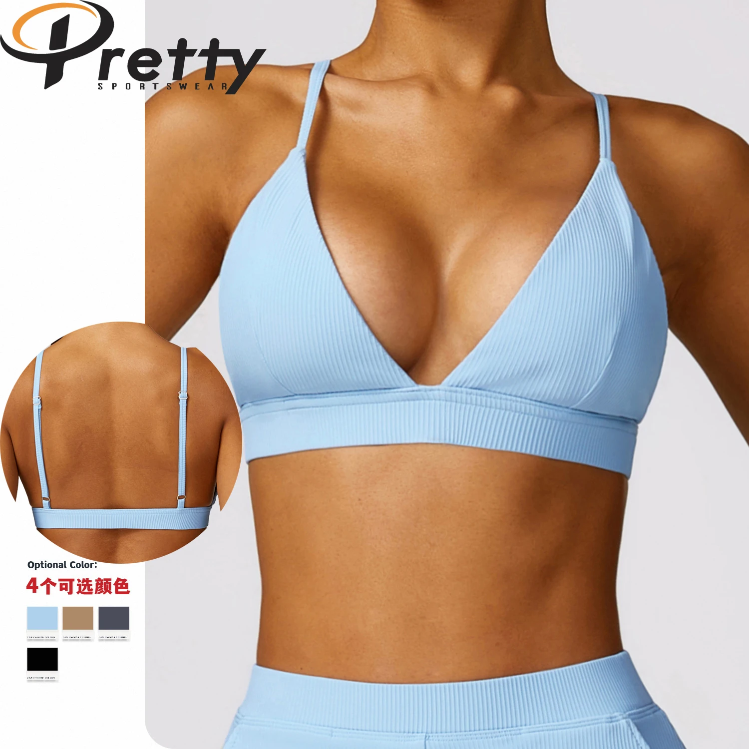 2024 New Arrival Ribbed Women's Sports Bra Beauty Back Yoga Crop Top Lady Sexy Deep V Sustainable Yoga Bras Sports Bra For Woman