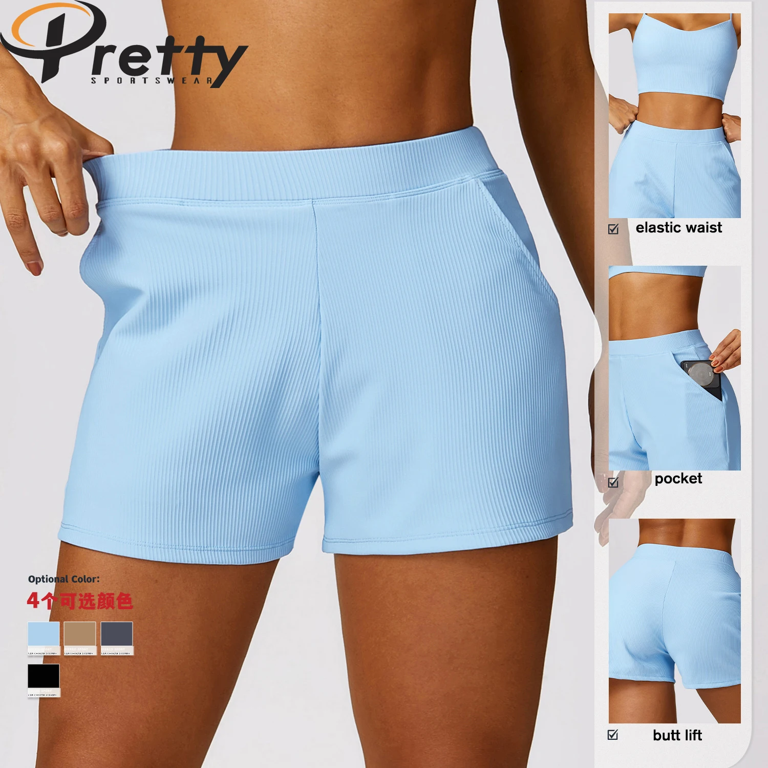 2024 New Arrival Ribbed Women's Shorts Workout Clothes Gym Fitness Training & Jogging Wear Quick Dry Solid Yoga Shorts For Women