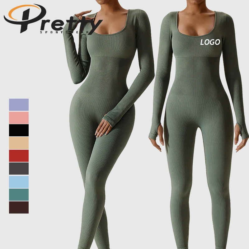 New Fashion Spring Dance Seamless Fitness Sports Jumpsuit Tight Long-sleeved Yoga Suit Seamless Yoga Jumpsuit Women Sportswear