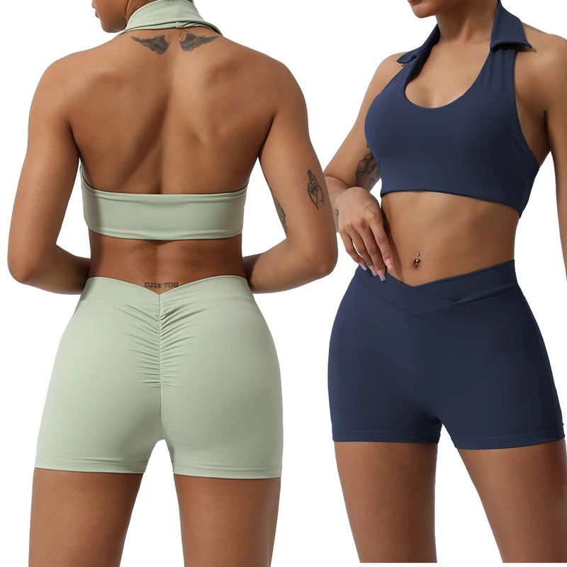 2023 New Model Fashionable Custom Outdoor Fitness Sportswear Bra Leggings Gym Sets Breathable Quick Dry Yoga Shorts