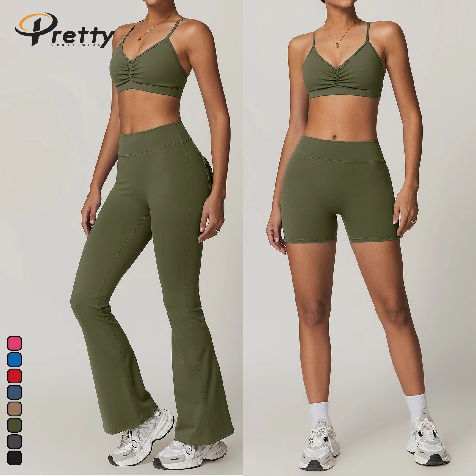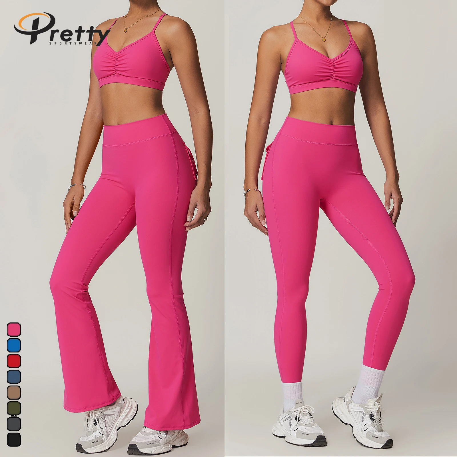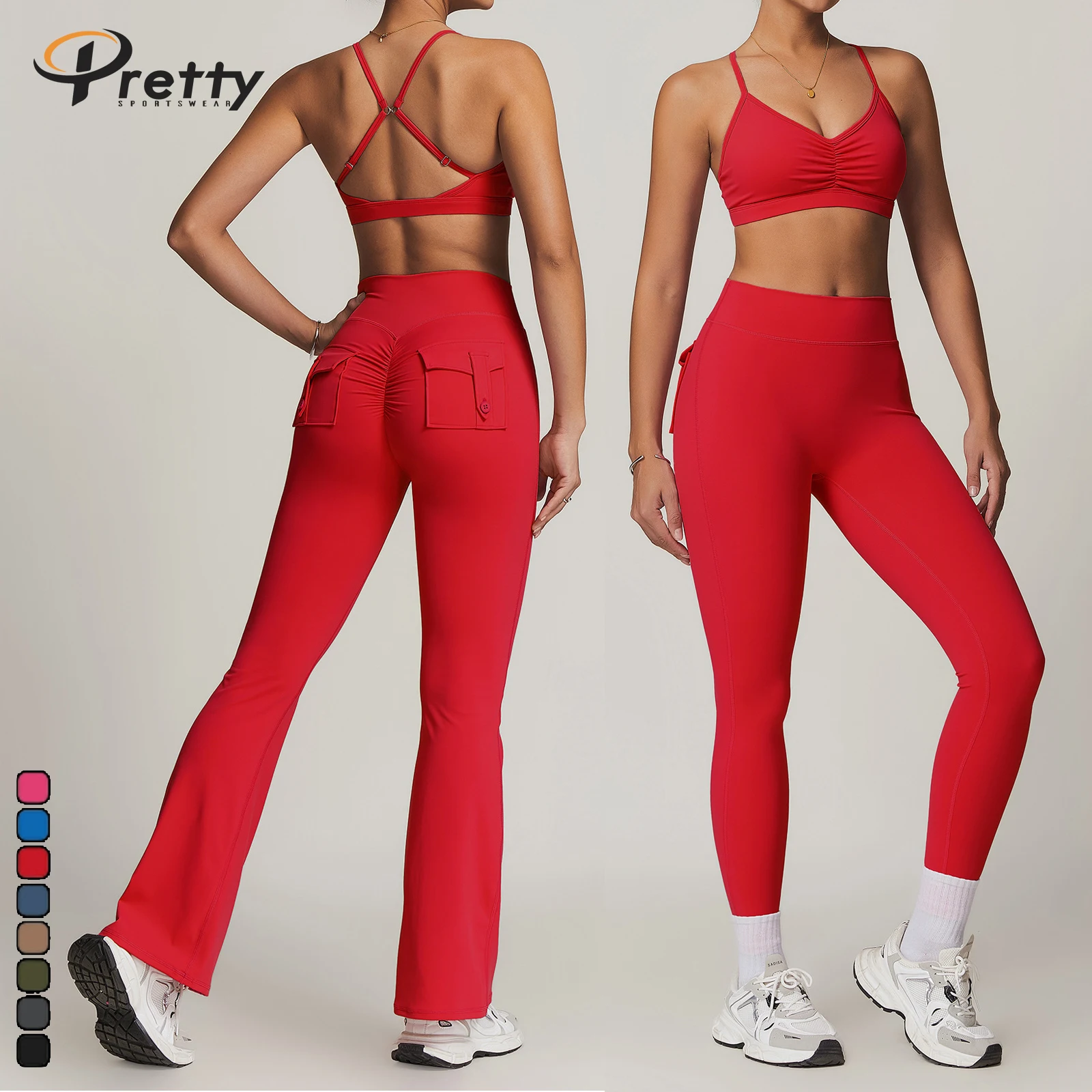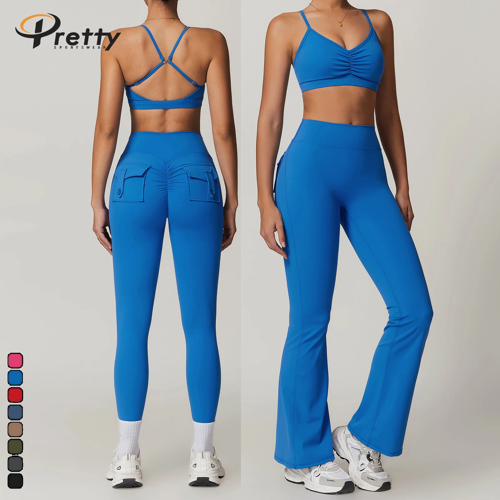 New 4pcs Breathable Gym Fitness Sets Beauty Back Bra Yoga Leggings Hip lift Sports Flared Pants Yoga Sets For Women Sportswear