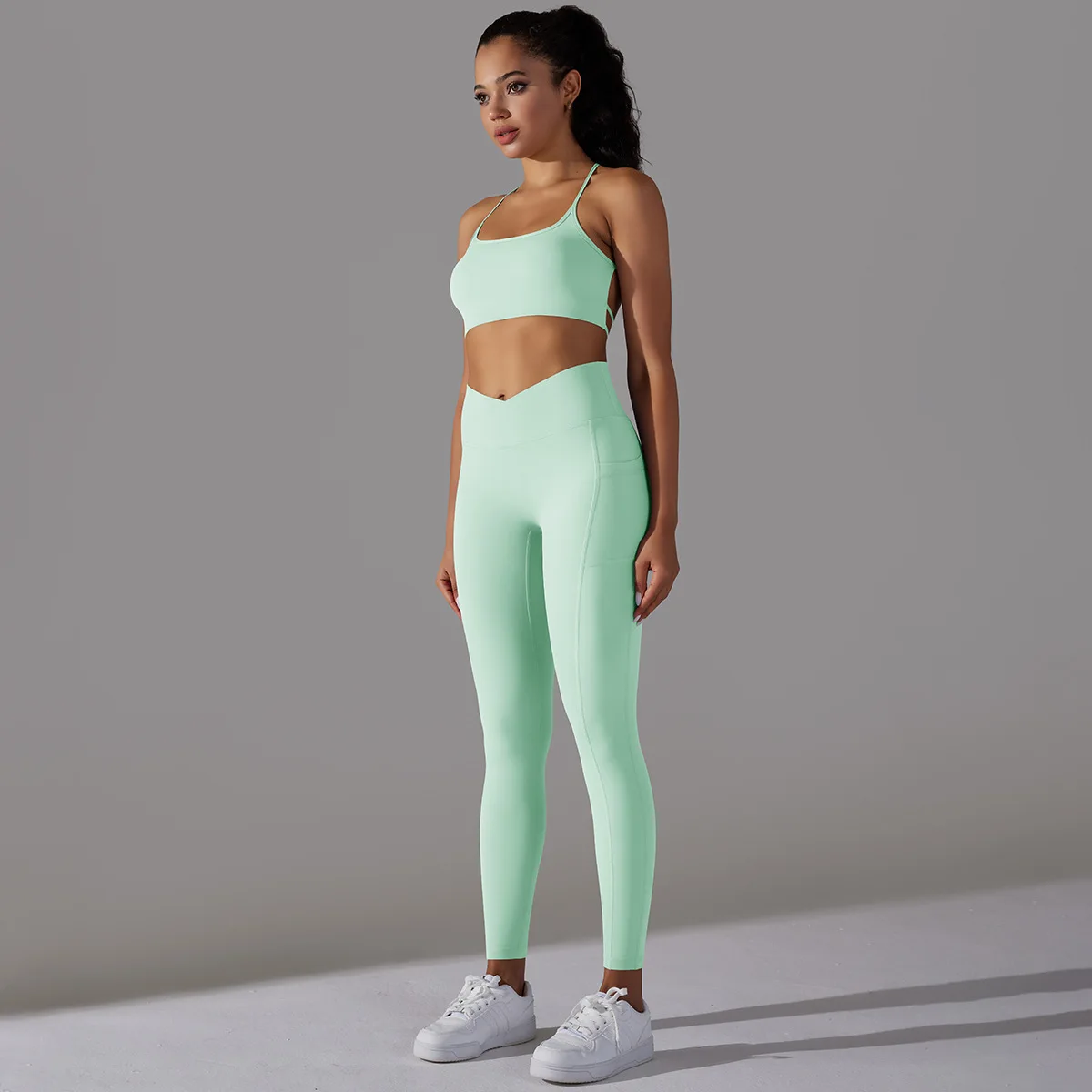 2024 Custom Womens Clothing Sexy Beauty Back Butt Lift Yoga Leggings For Women Sportswear Workout Gym Fitness 2 Piece Yoga Set