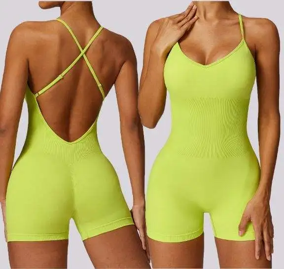 Women Girls Soft Comfort Quick Dry Compression Padded Cross Back Sexy Seamless One Piece Workout Romper
