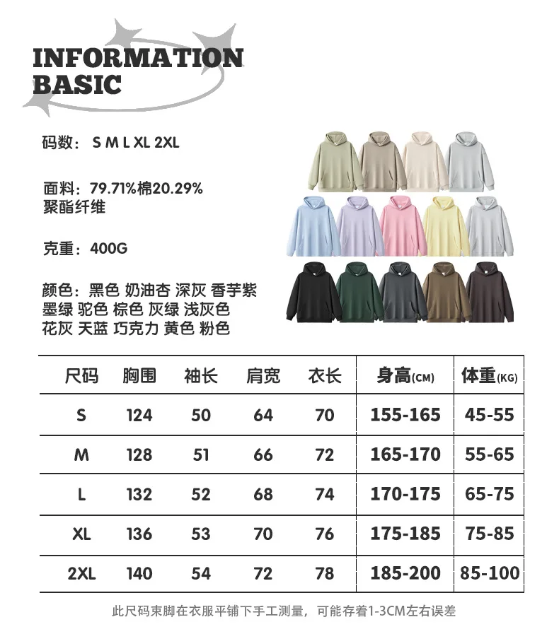 2024 New 400G Custom Color Loose Heavy Weight Wool Hoodie For Women Men's Hoodie Casual Coat Sports Coat Unisex Workout Top