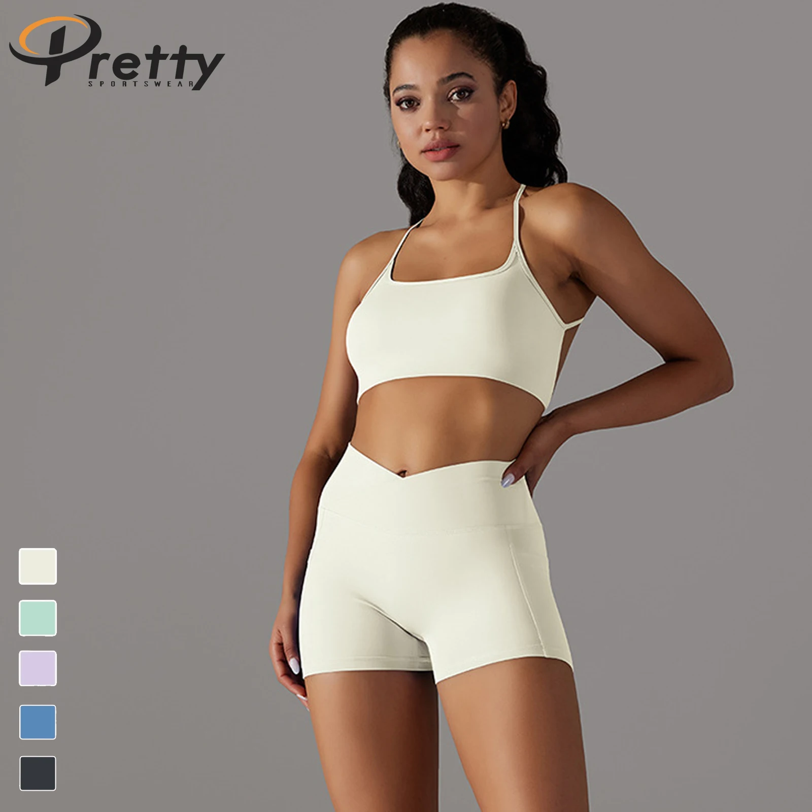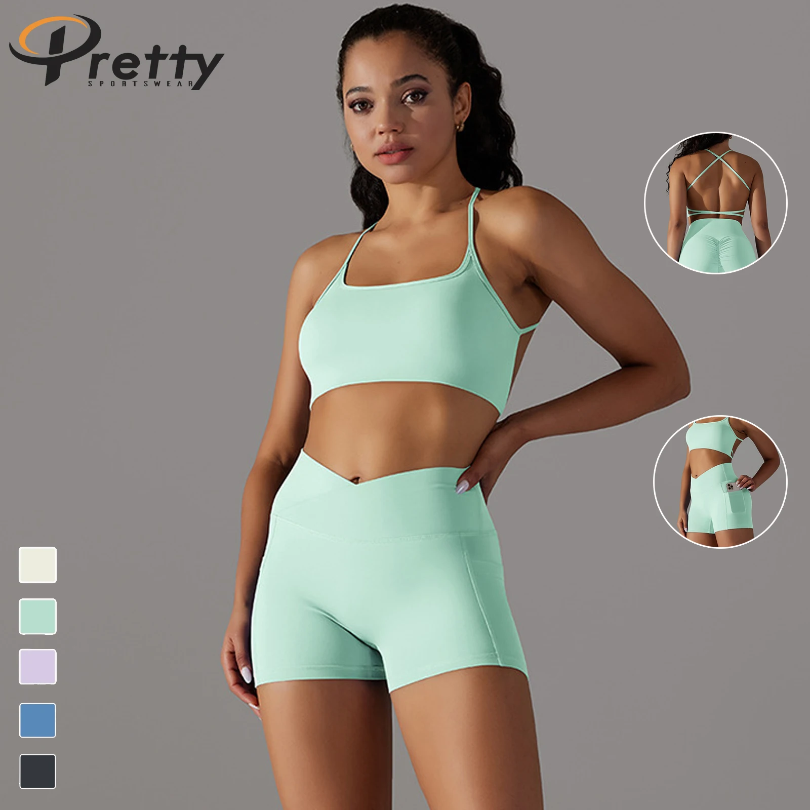 2024 Seamless Breathable High Elastic Beauty Back Yoga Bra Sports Soft 2 Pcs Fitness Sets For Women Butt Lift Yoga Shorts
