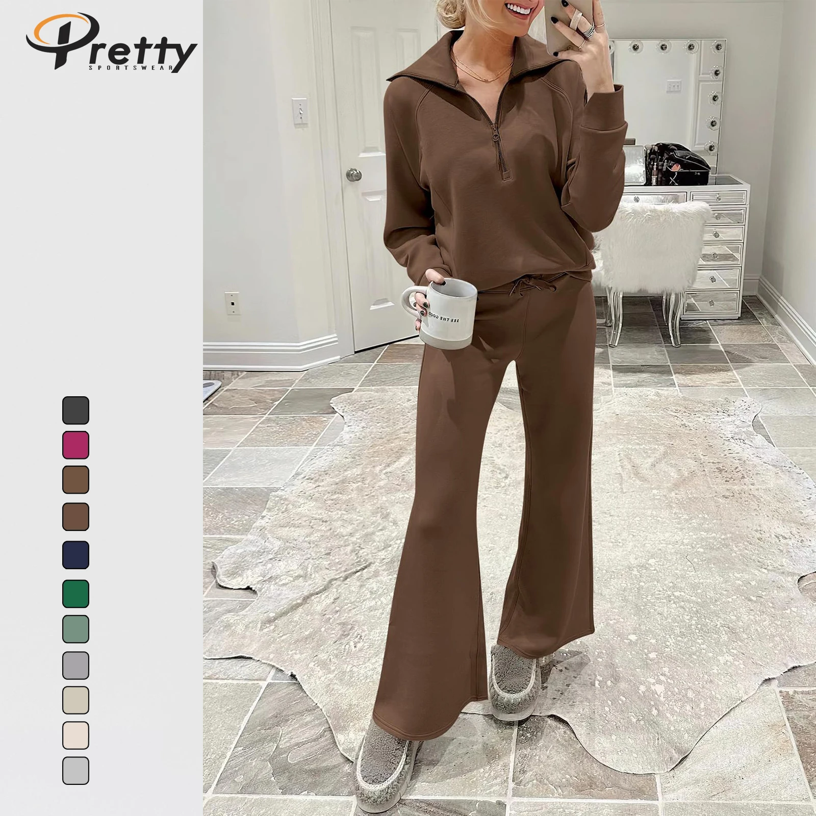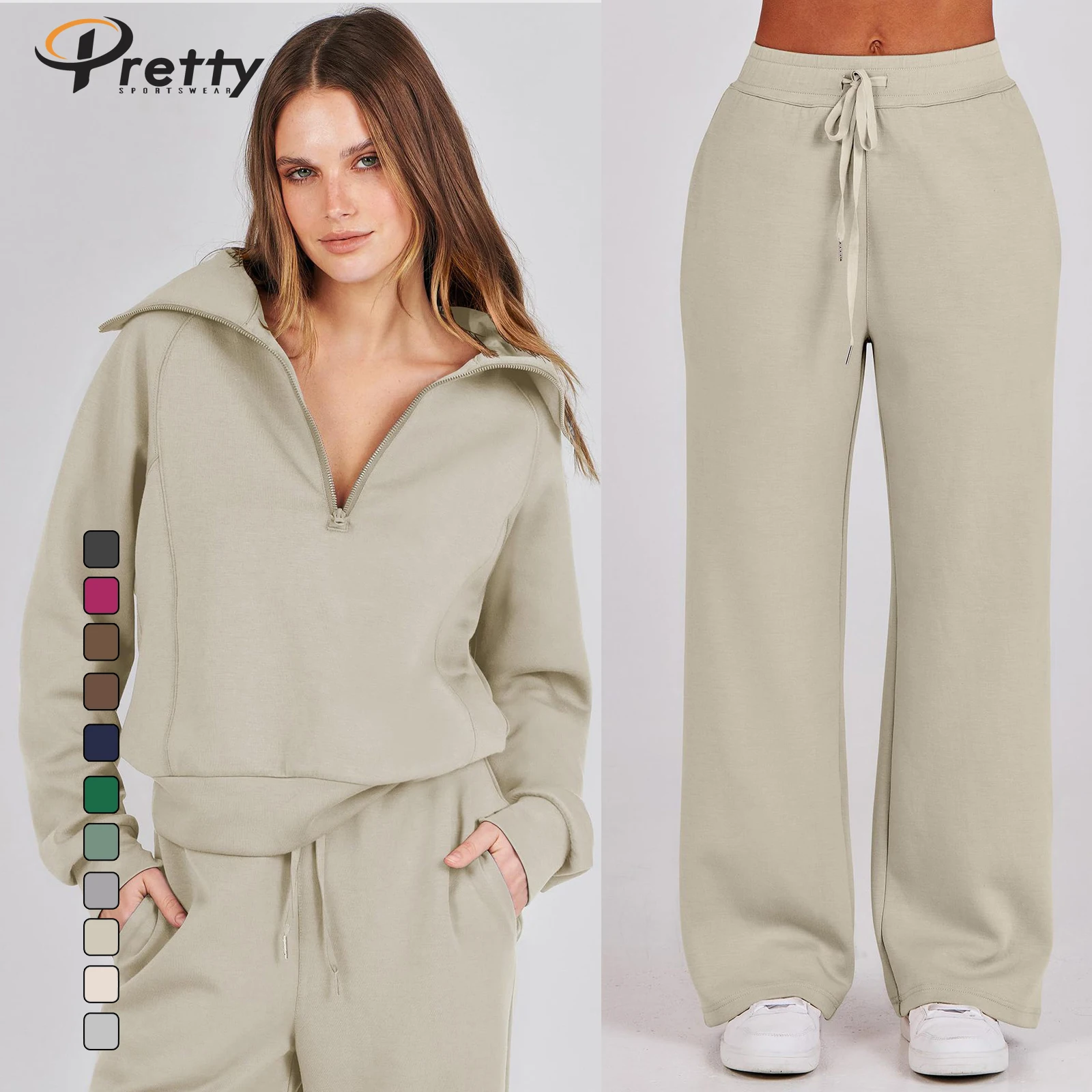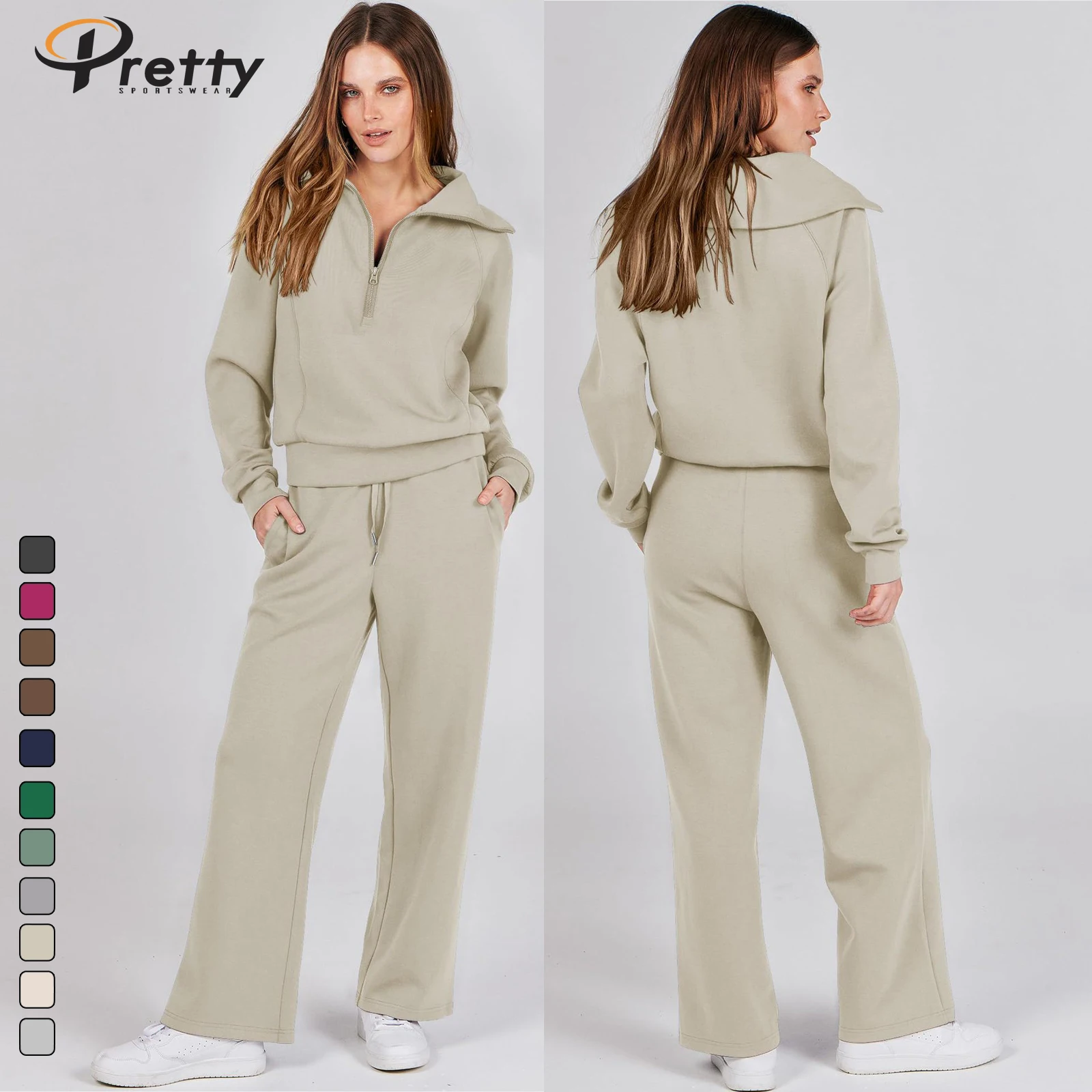 2024 Winter Women's Casual 2 Pcs Set Sports Suit Zipper Jacket Stand Collar Coat Loose Pants Sweater For Women Workout Sets