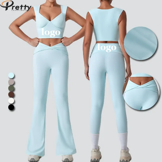 Womens Clothing Custom Fitness Sets Stylish High Waist Women Pants Sportswear Yoga Suit Sleeveless Quick Dry Tank Top For Women