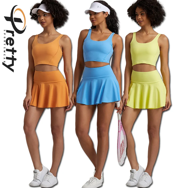 Custom Women Fitness Sets Gym Wear Womens Clothing Tennis Skirts High Quality Girls Tennis Golf Dress 2 Piece Set Sportswear