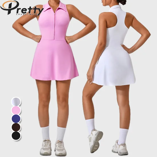 Custom Logo Women Tennis Dress With Pockets Active Wear Lightweight Tight High Waist Golf Badminton Dress Women Yoga Clothing