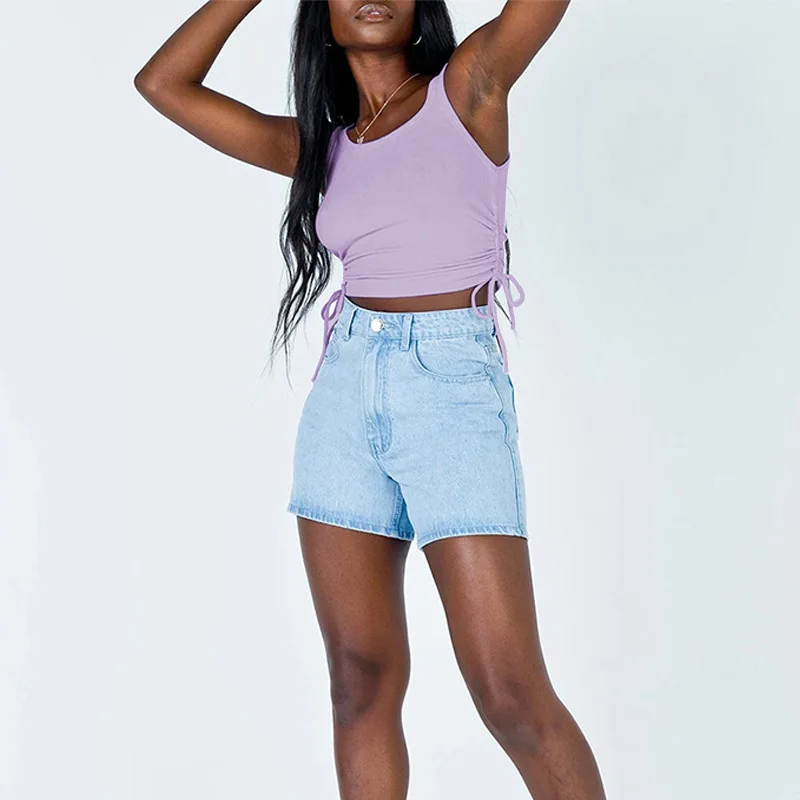 Name | Summer New Fashion Trend Pleated Top Ribbed Drawstring Slim Fit Sleeveless Crop Top For Women Casual Sexy Tank Top | ||||||