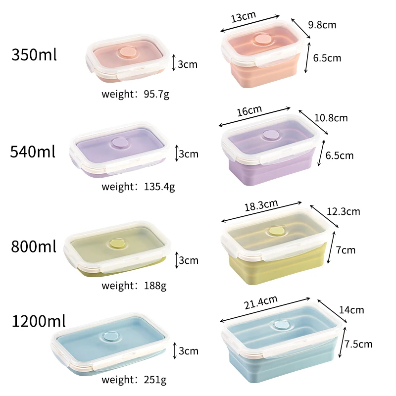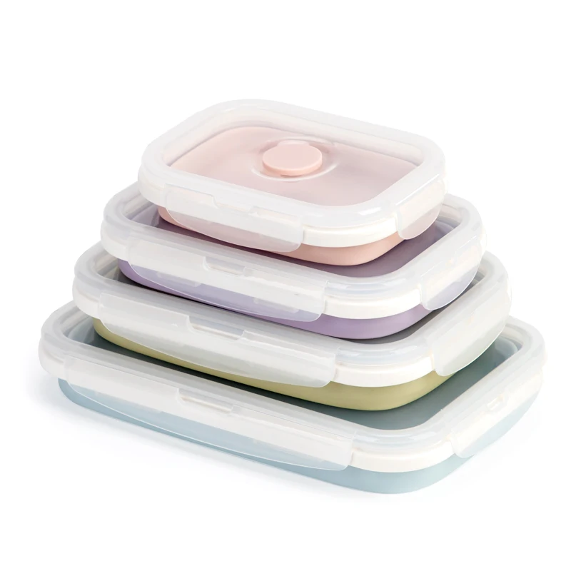 4PCS Square Collapsible Lunch Box Set Silicone Food Containers with Lids Portable Expandable Bowls Travel Foldable Storage Box | ||||||||