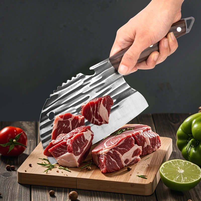 Hand Forged Chef Knife Set with Full Tang Wood Handle High Carbon Steel Butcher Knife Set for Meat Cutting Cleaver Knife Set