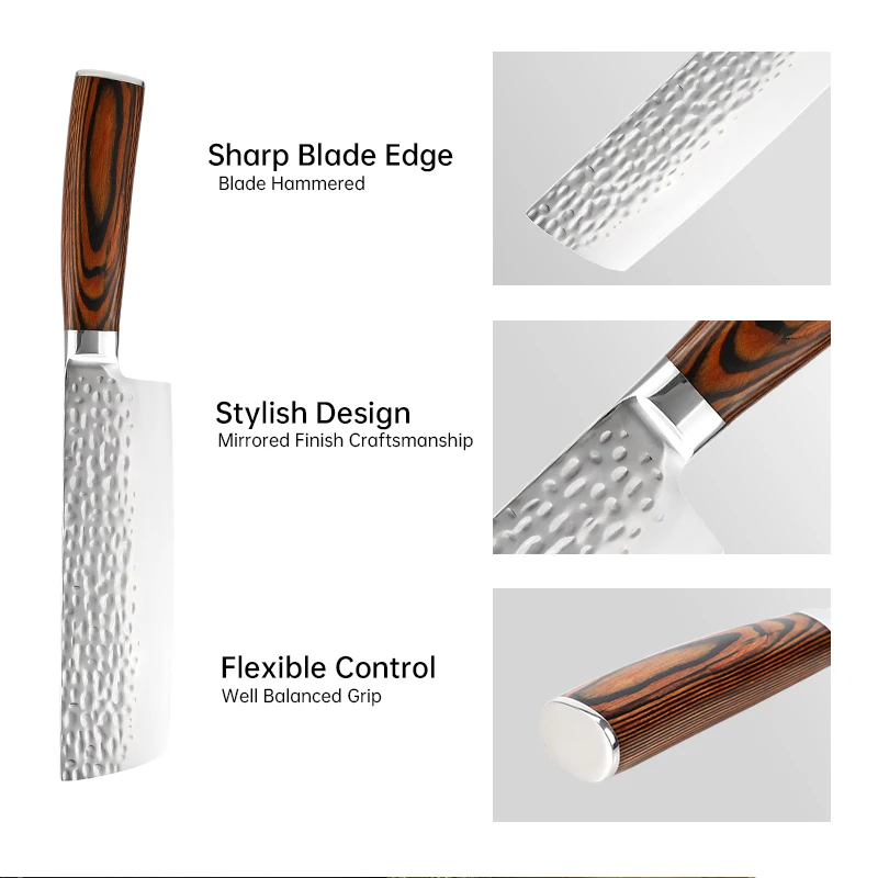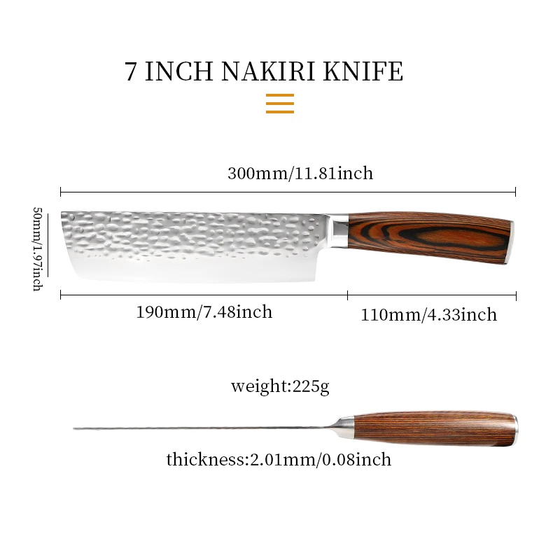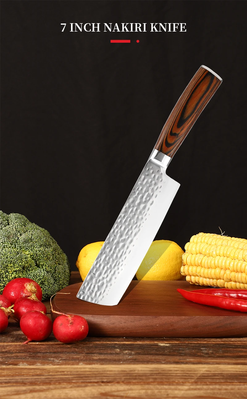 Nakiri Knife with Pakkawood Stainless Steel 7 Inch Kitchen Knife Vegetable Chef Knife | ||||||||