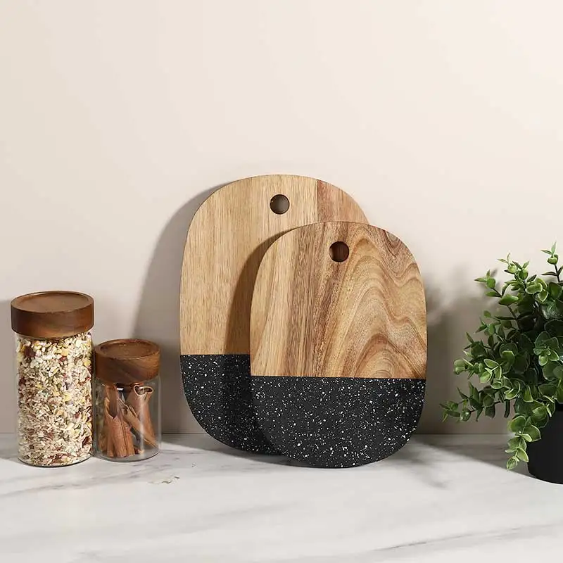 Round Marble Cutting Board with Acacia Wood White and Natural Cutting Boards | ||||||||