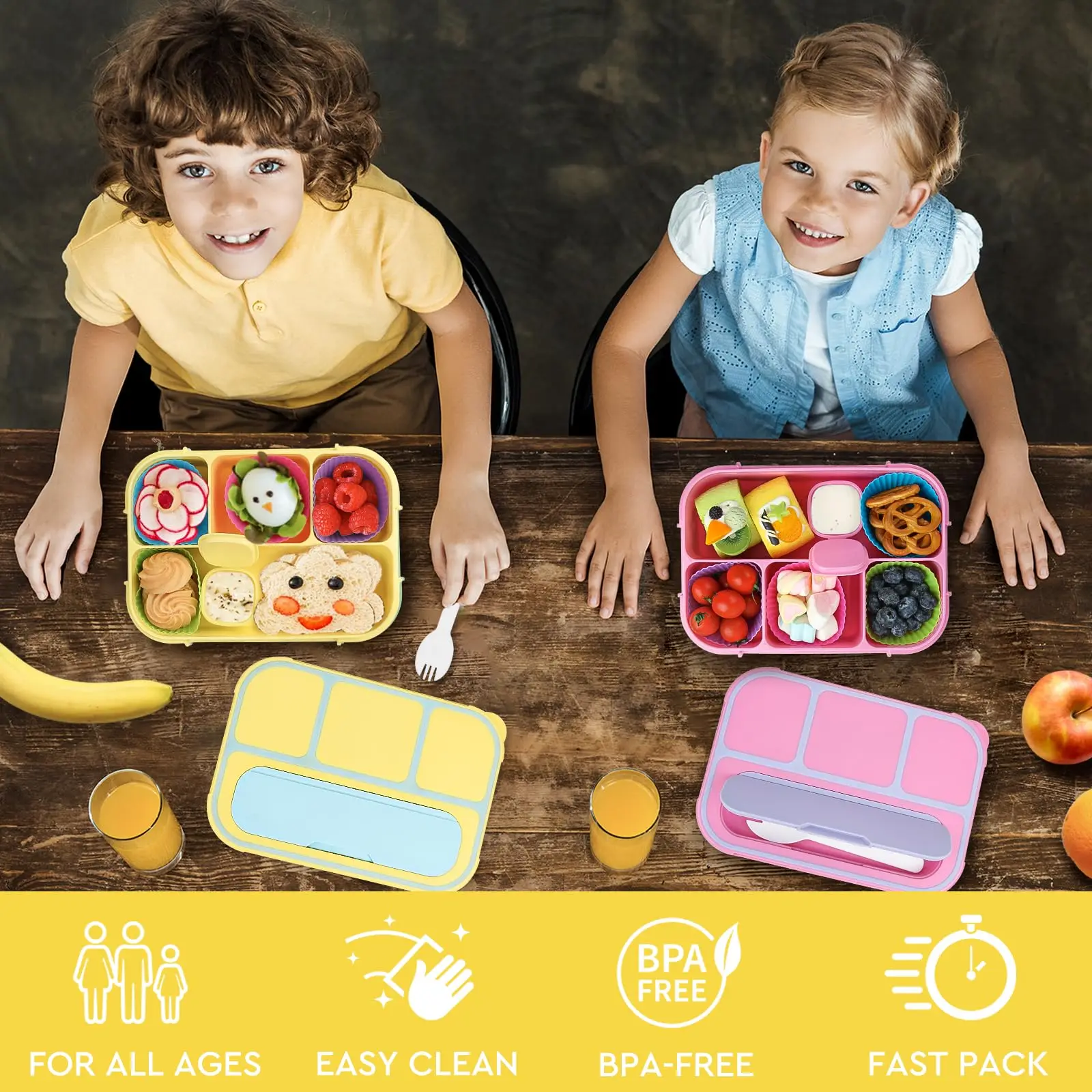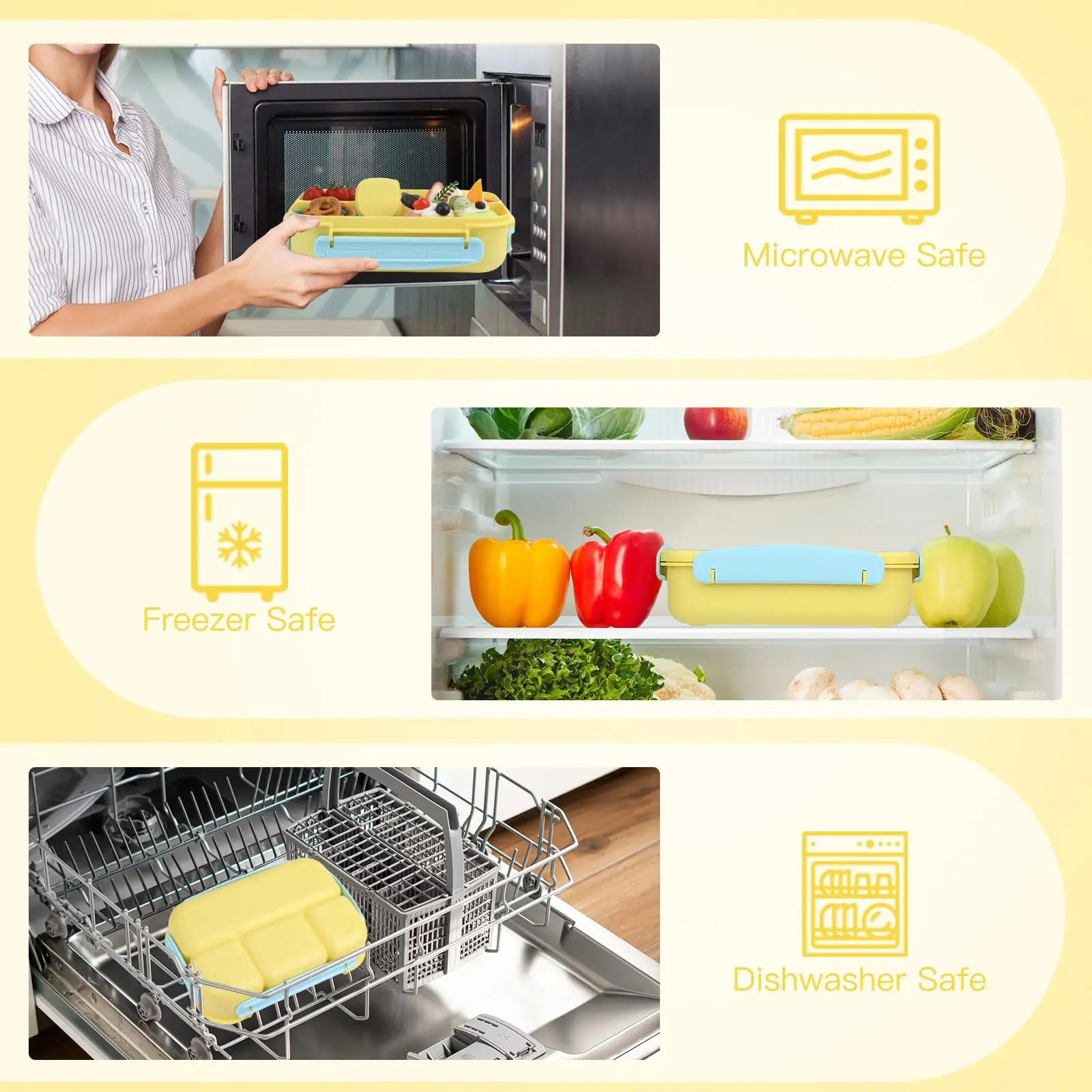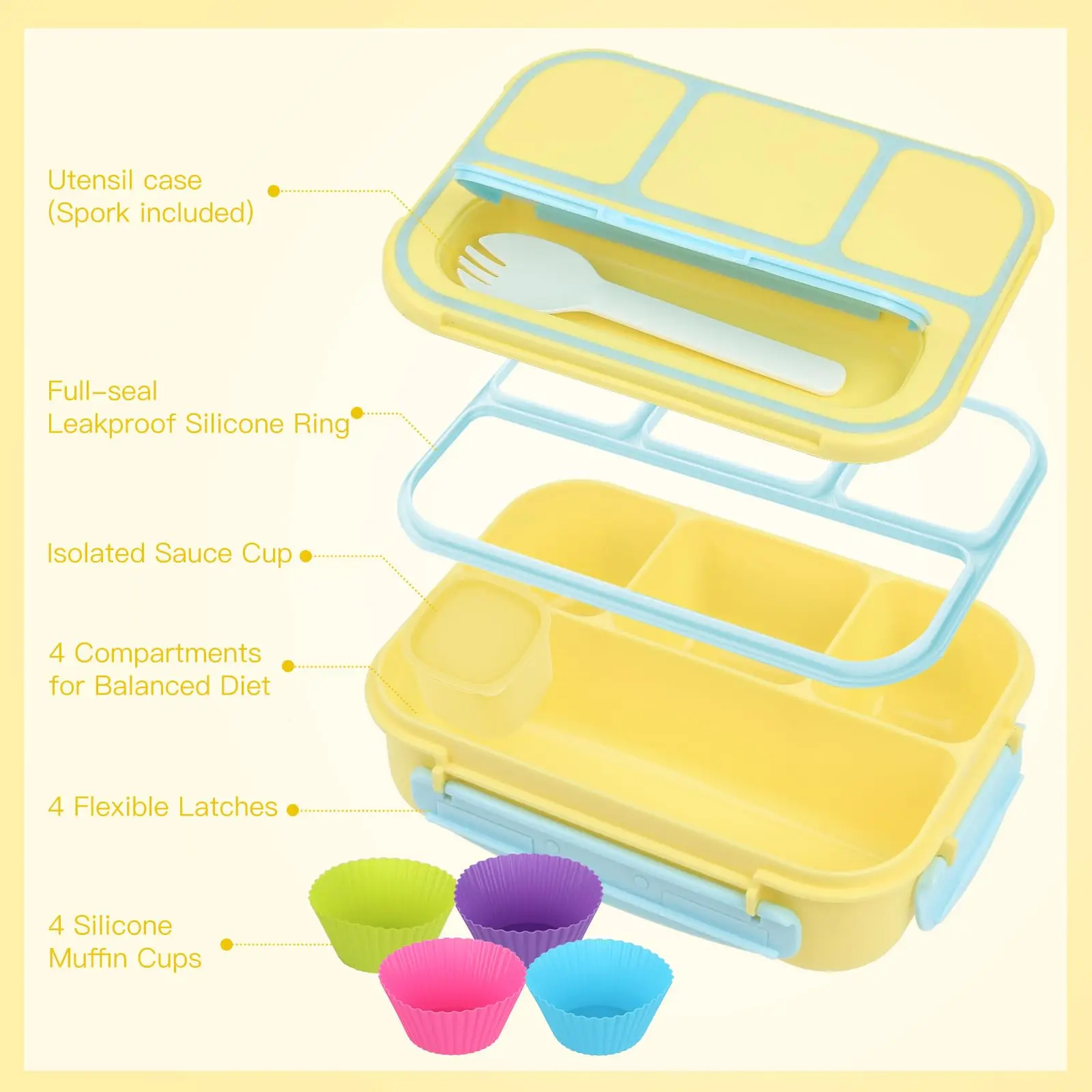 Bento Box Adult Lunch Box Containers for Adults Men Women with 4 Compartments Lunchable Food Container with Utensils Sauce Jar | ||||||||