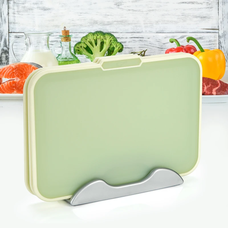 Kitchen Set of 3 Wheat Straw PP Plastic Chopping Board Non Slip Colored Reversible Cutting Board with Stand | ||||||||
