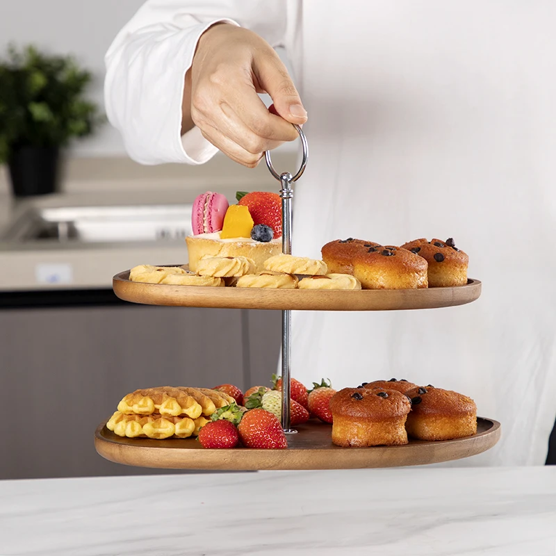 Wood 2-Tiered Dessert Stand