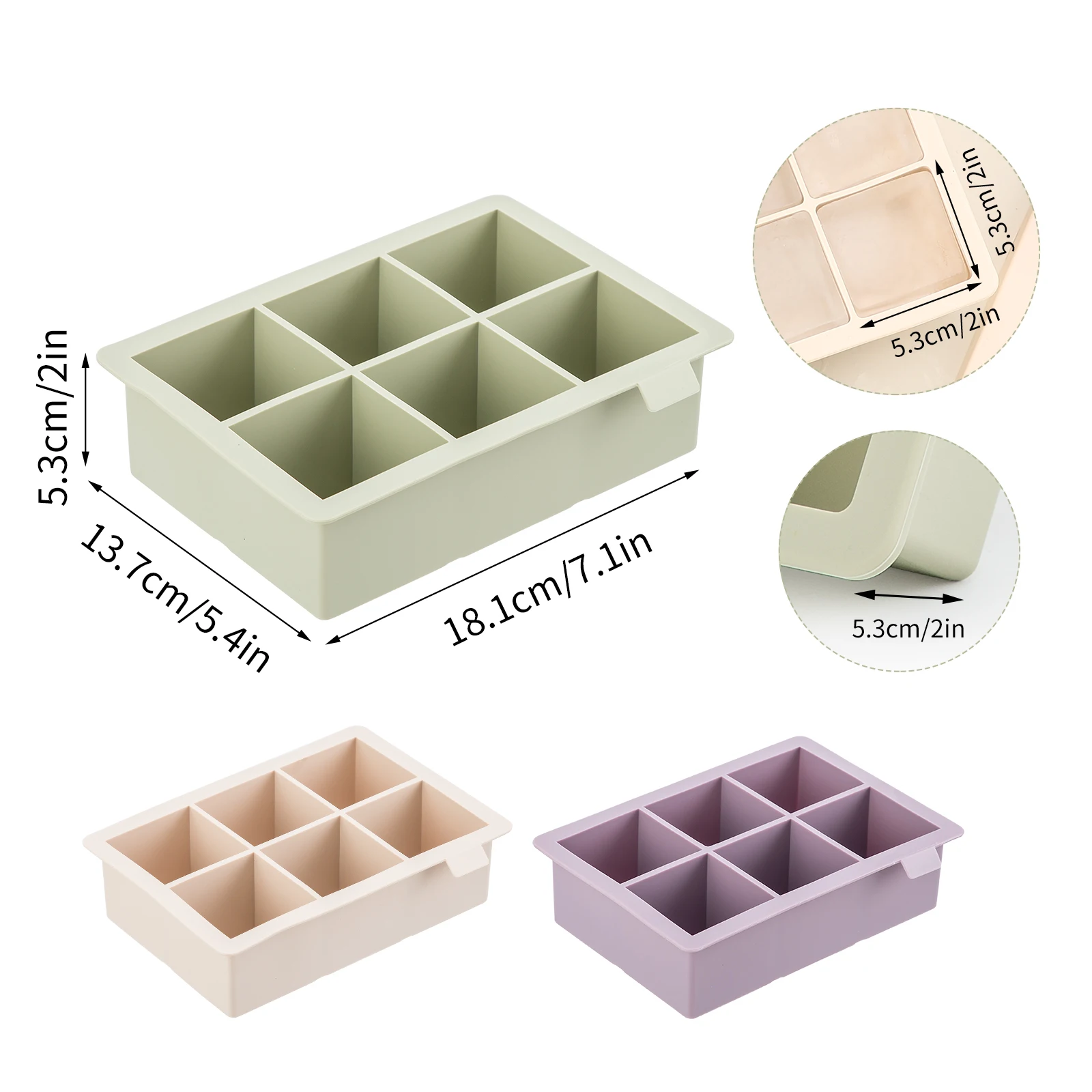 3 Pack Large Size Silicone Ice Cube Molds with Leak Proof Removable Lid Square Ice Cube Tray And BPA Free for Cocktail | ||||||||