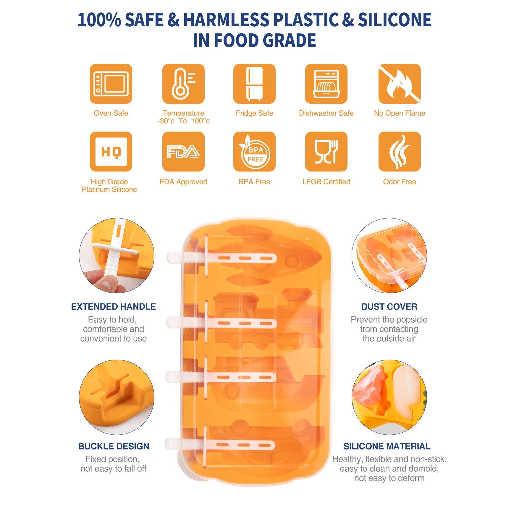 4 Holes Silicone Ice Cream Molds Lolly Moulds Silicone Popsicles Mold Silicone Ice Mold for Kitchen Making Ice Cream