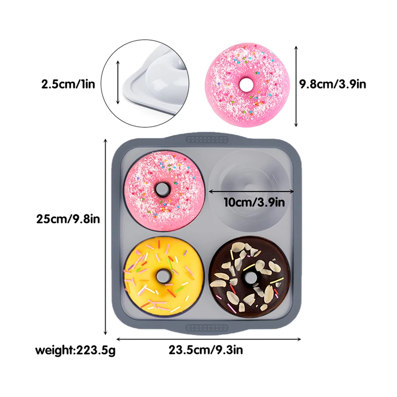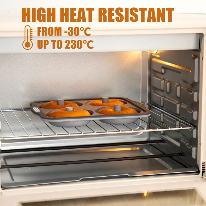 Silicone Donut Mold for 4QT Baking Reusable Doughnut Pan Mold for Baking 4 Cavity Non-Stick Bagel Pan Baking Accessories | ||||||||
