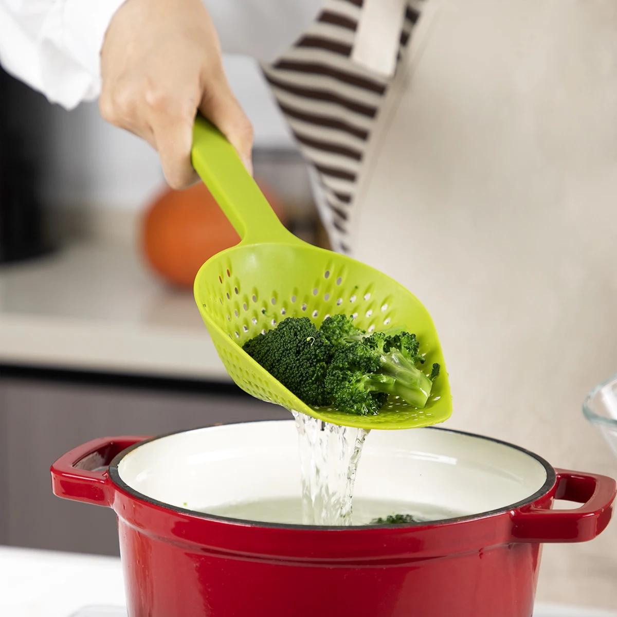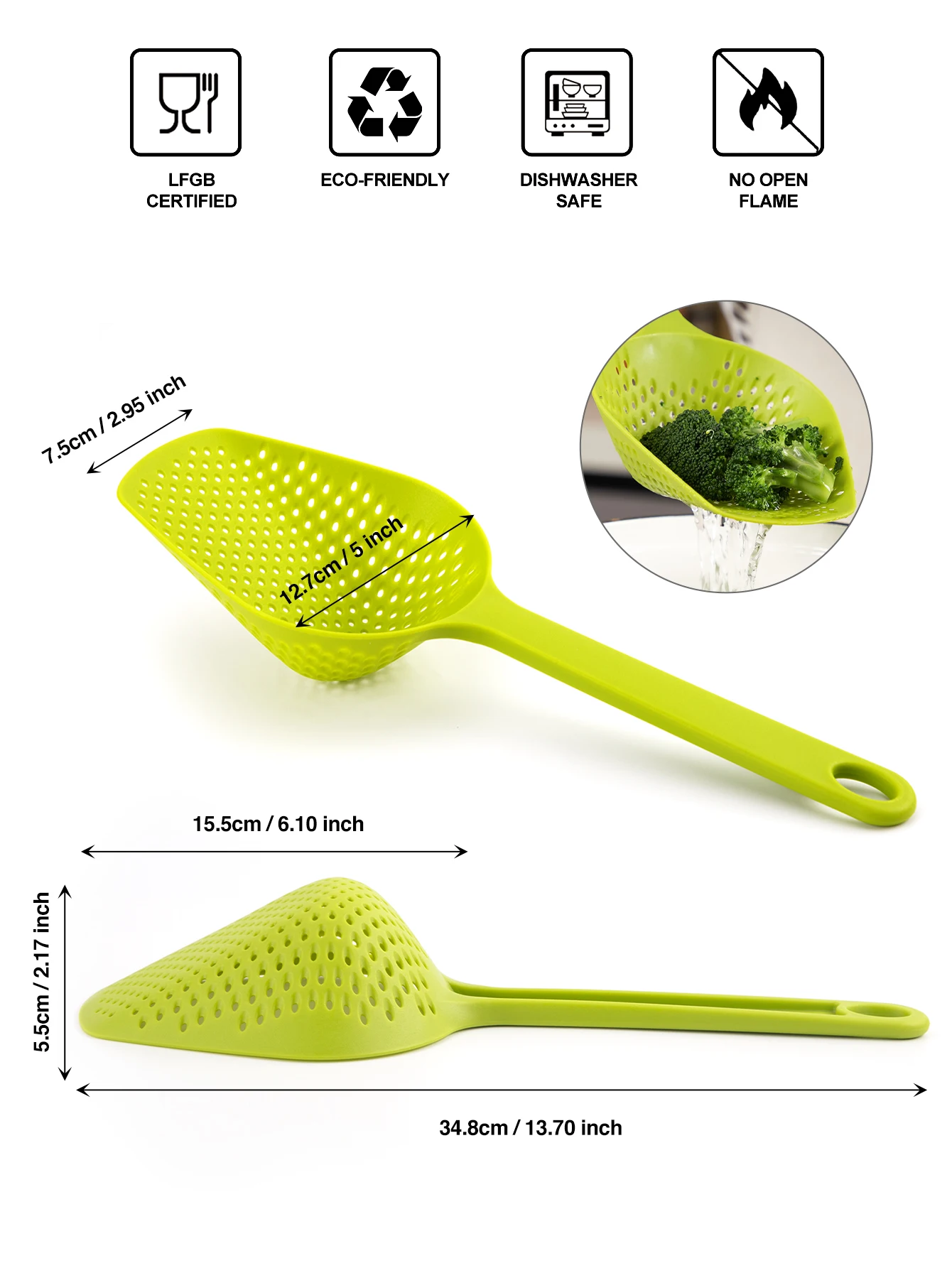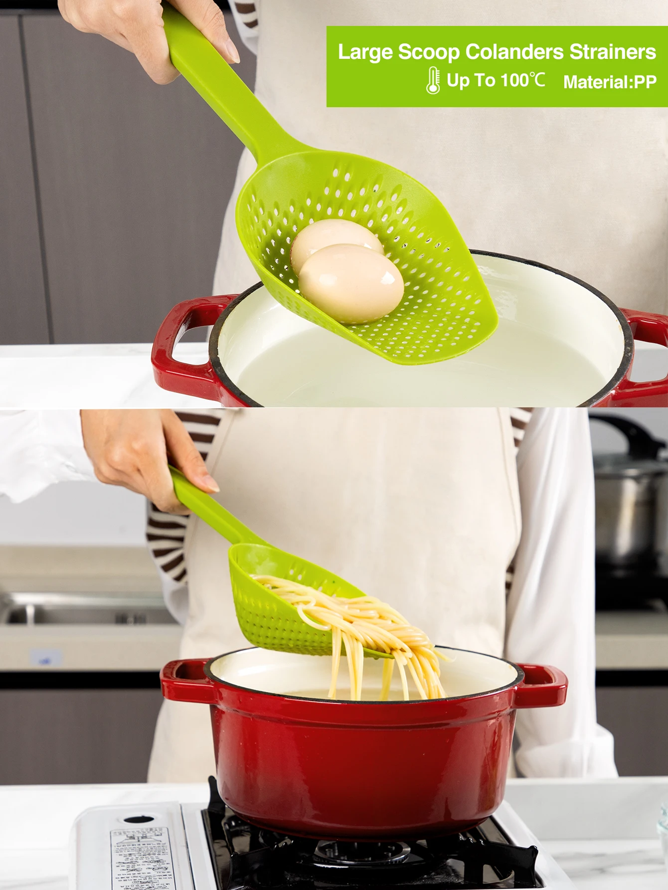 Food Scoop Colander Strainer Slotted Spoon with Handle, Plastic Heat-Resistant Large Slotted Strainer for Pasta Vegetables Salad | |