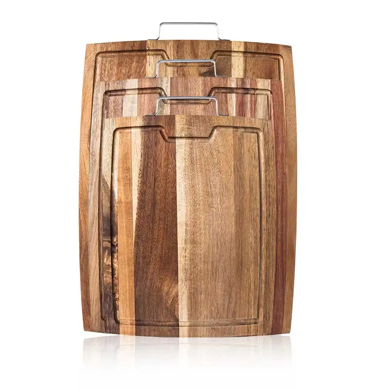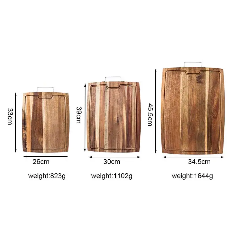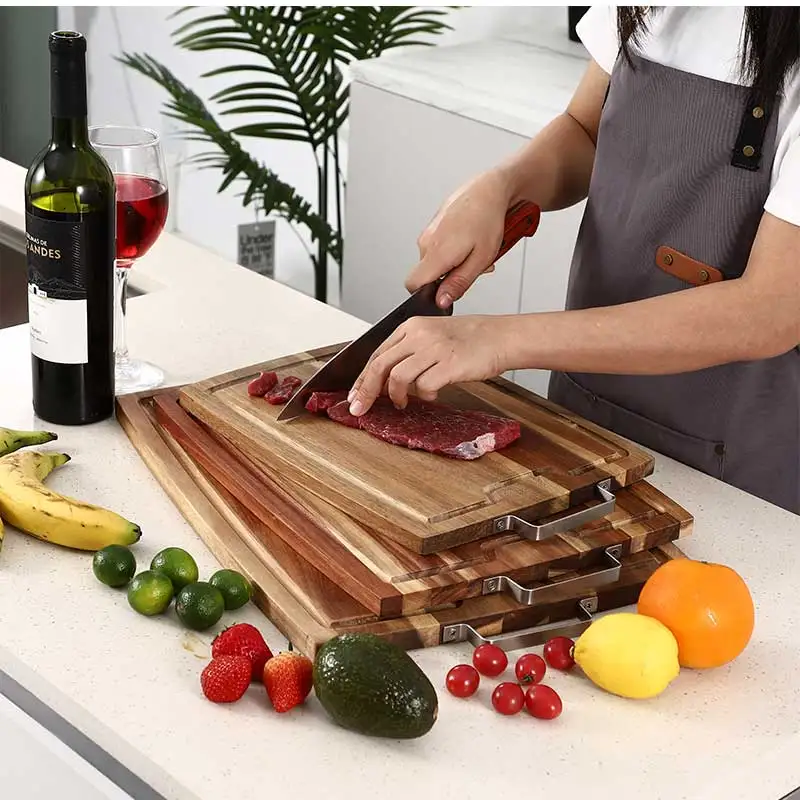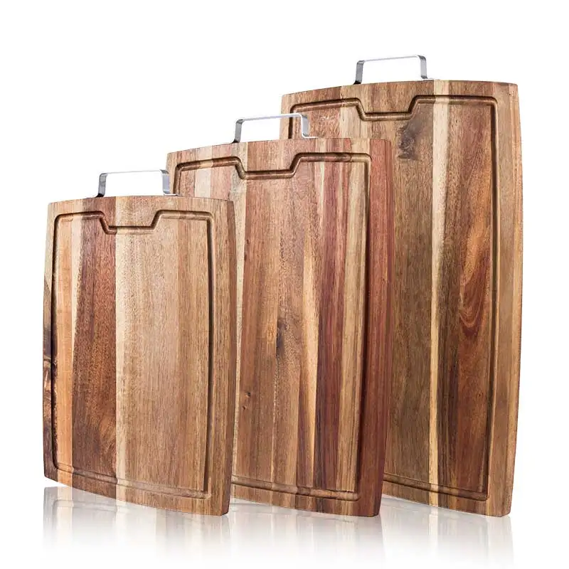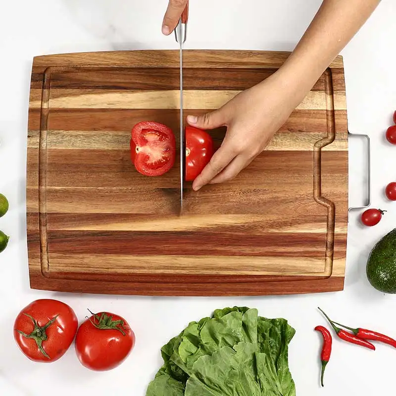 Kitchen Chopping Board with Hardware Handle for Fruit & Vegetables Heavy Duty Serving Board with Juice Groove | ||||||||